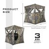Ample Inner Space: Measuring 180 x 200 x 166 cm, this hunting tent can conceal at most 3 persons. You and your hunting partner won’t feel constrained in the tent. With silent window screen buckles, people inside the hunting blind can look through any window without loud noise and access their hunting equipment freely.