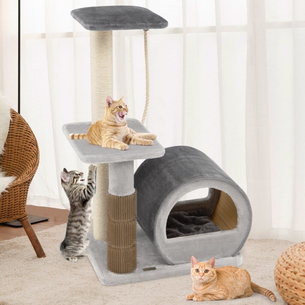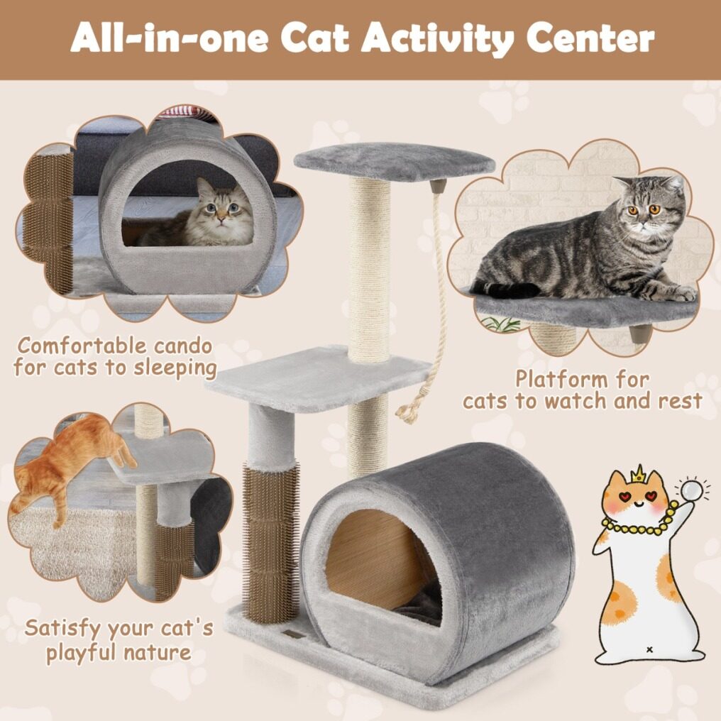 Cat Health & Massage Center: In order to fully release cat's instincts and divert their attention from your furniture, we have designed a tall and wear-resistant scratch post for cat to sharpen their claws. And there is a built-in grooming brush that allows cats to massage or tickle for a healthy and refined body.
