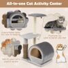 A cat climbing tree for cats and for your home! Are you troubled by the mess has made by your cat, our cat climbing tree will keep you away from these annoyances. With a plush top perch, a jumping platform, a hanging ball, and a cat house with a bamboo mat, the3 tier cat climbing tree caters to a variety of daily activities such as resting, jumping, playing, and provides a comfortable and relaxing experience for cats. In addition, the cat climbing tree has durable sisal posts and a EVA brush to fully satisfy the curiosity of cats, allowing them to groom and polish their paws, making them a sophisticated cat, as well as diverting their destructive power towards furniture. And this cat climbing tree has a stable structure with a square engineered wood base to ensure high load-bearing. Besides, its modern and concise design makes it a versatile home decoration.