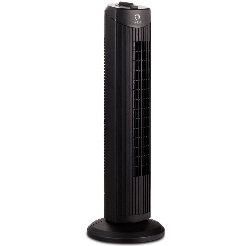 This 28" tower fan uses space-saving tower design without blades to create a full and satisfying breeze.