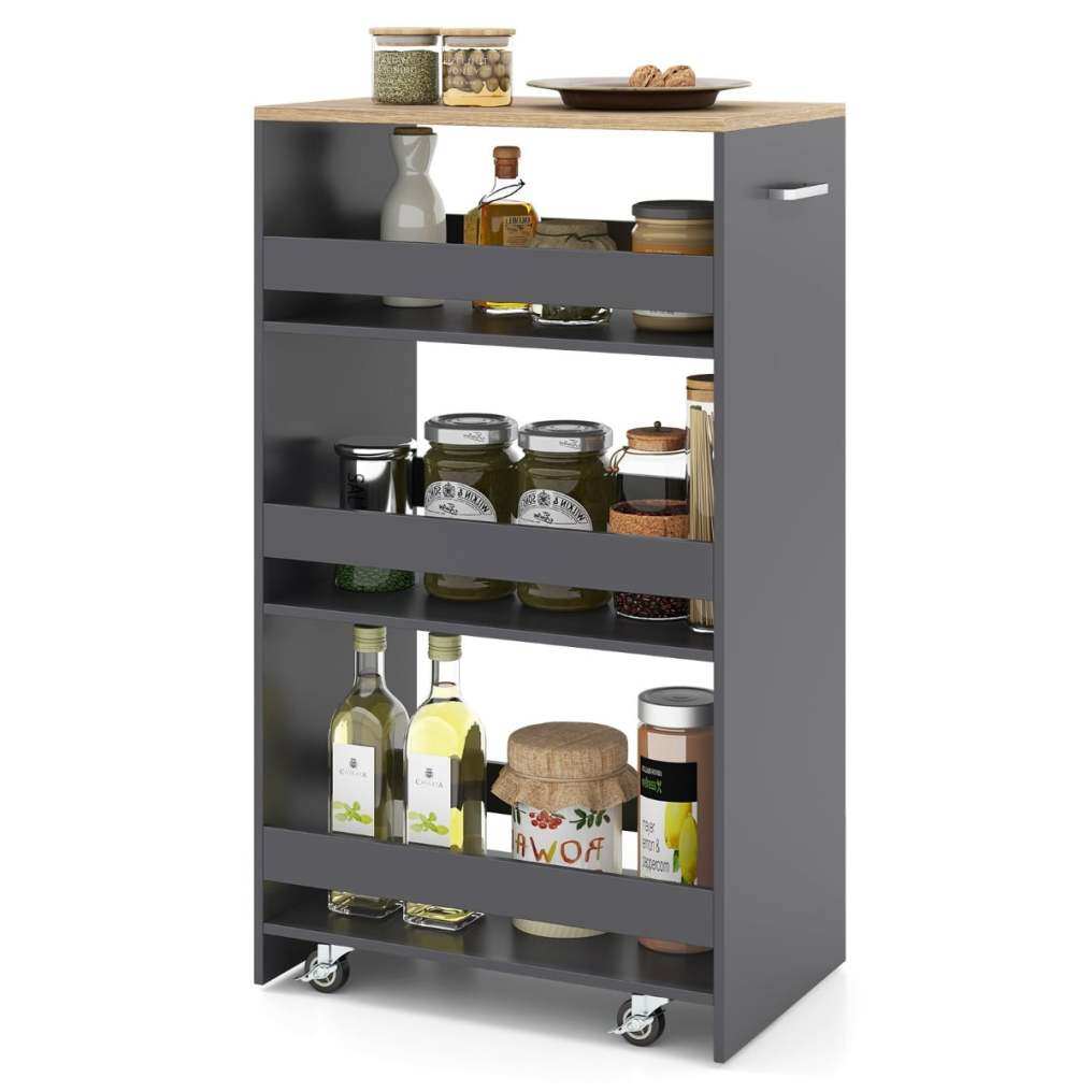 Extendable, slim storage trolley : Looking for a space saver? With dimensions of 47.5 x 30 x 80.5 cm (L x W x H), this slim kitchen trolley fits effortlessly into tight spaces, thus optimizing storage options in compact areas.