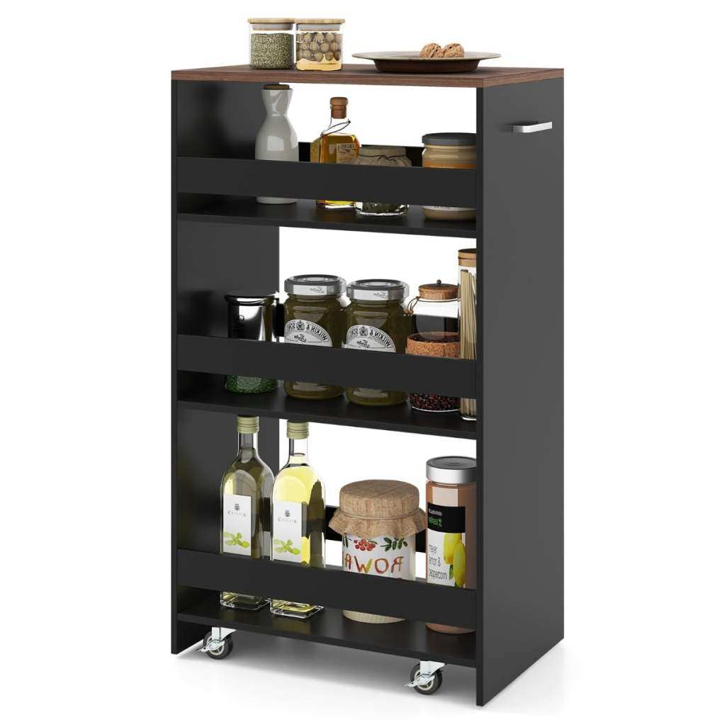 With four storage levels, it offers practical organization for various items. Whether you need to store kitchen utensils, office supplies, crafts, or other belongings, this cart is up to the task. Its compact and space-saving design helps maximize storage in any area and keep your space clean and tidy. User-friendly features include four smooth-rolling casters and a convenient handle. Combined with the reinforced top, this rolling storage cart is a reliable addition to your living space. Expand the storage and functionality of your kitchen with our rolling cart and enjoy a clean and organized workspace.