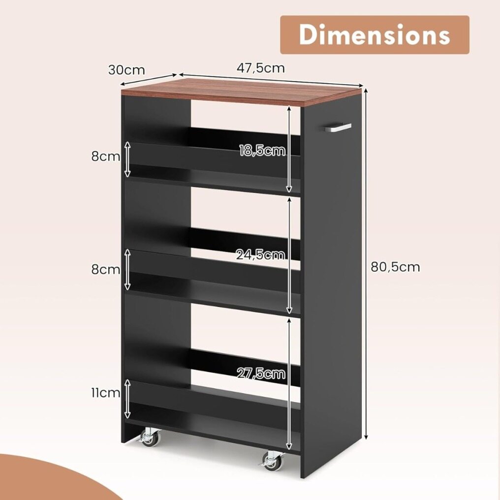 Extendable, slim storage trolley : Looking for a space saver? With dimensions of 47.5 x 30 x 80.5 cm (L x W x H), this slim kitchen trolley fits effortlessly into tight spaces, thus optimizing storage options in compact areas.