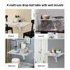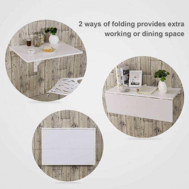 This folding table is perfect for small apartments, tiny living and minimalist aesthetics for its modular design; the sleek white finish will flawlessly blend into any existing home decor. 2 ways of folding design provides extra space, put it up when you're ready to eat, compute, write, draw, paint, etc. And in daily, the table can be folded in half as a storage shelf or fold flat to save you valuable space. This drop leaf table folds out fast and folds flat against wall easily.
