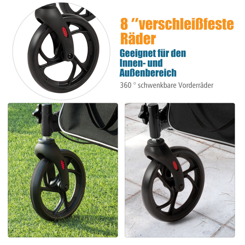 The widened backrest and breathable seat provide good support. You can easily fold it into a compact size with one hand to save space. And the sturdy X-shaped aluminium alloy frame makes it lightweight and easy to carry. The ergonomic and non-slip handles have six adjustable heights, so you can choose the most suitable height according to your needs. Obstacle aid pedals and double brake system help improve safety and stability. It is equipped with a removable storage bag and an umbrella holder, which is convenient for you to place daily things.