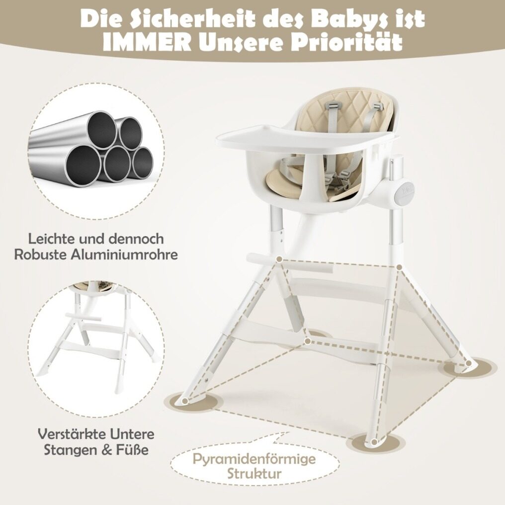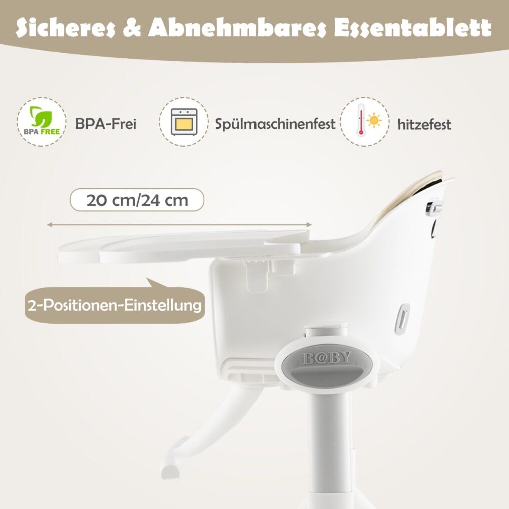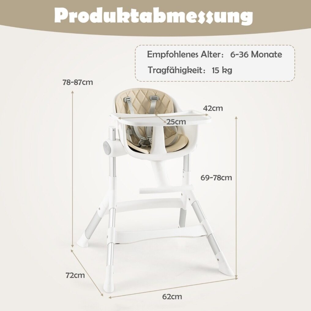 Versatile baby high chair: With this high chair, the baby can eat or play undisturbed. You can also feed your baby at the table. If desired, the food tray can be removed and the baby high chair functions as a normal stool. The baby high chair is ideal for babies aged 3-36 months.