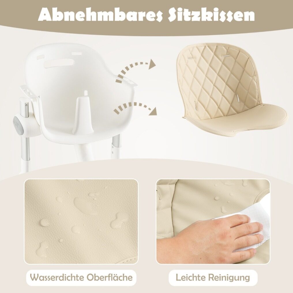 Hassle-free maintenance: You can wipe the seat cushion with a clean cloth when it gets dirty. The food tray is dishwasher safe so cleaning is a breeze. In addition, the dining board can be adjusted back and forth in two different positions. And it's also BPA-free and heat-resistant for your baby's safety.