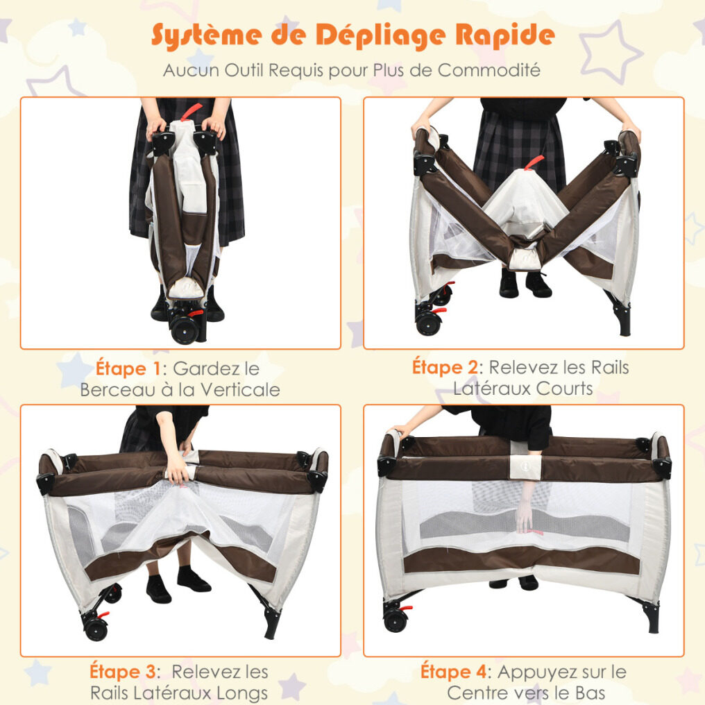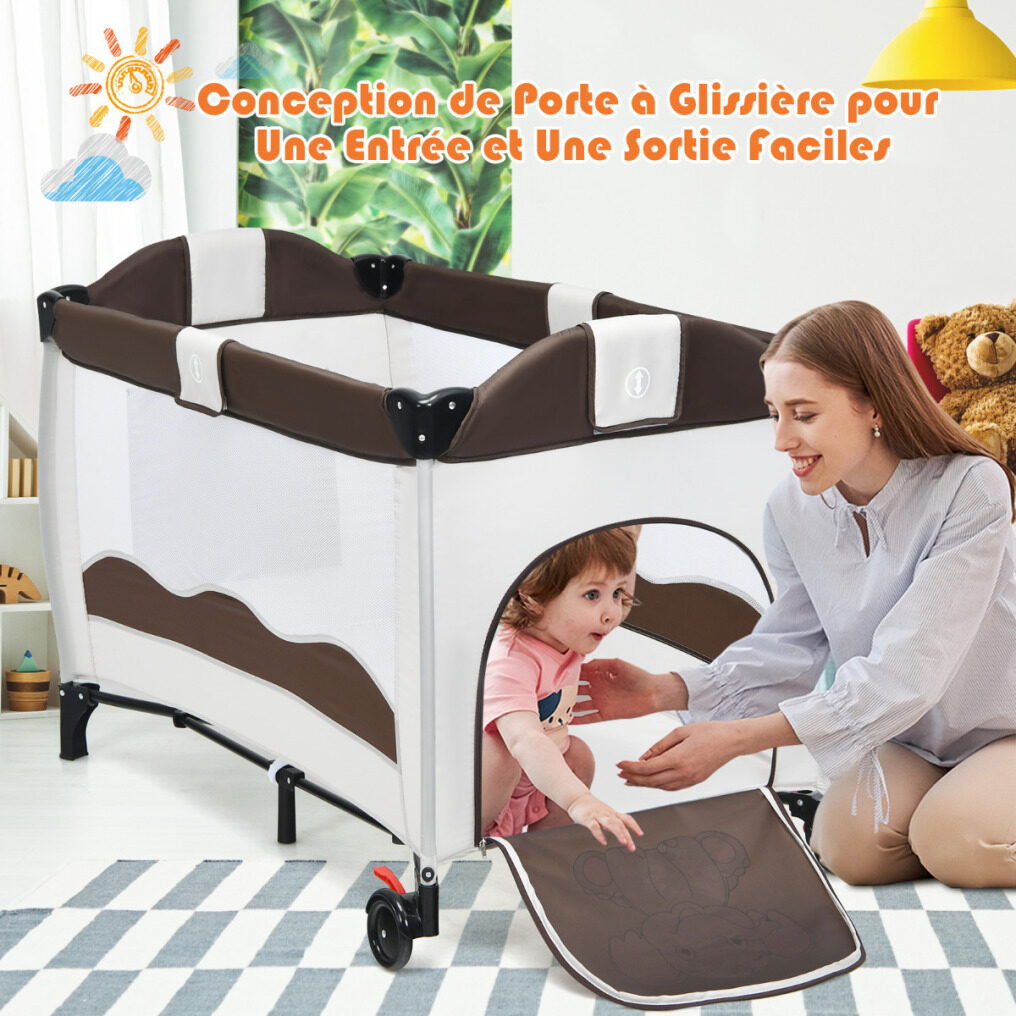 This Costway Portable Two-layer crib is your perfect choice for going on holidays, picnics, traveling and visiting families and friends with your baby.