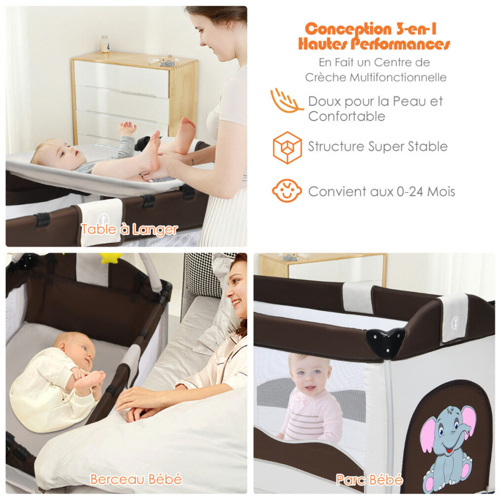 Unlike other cribs, our crib can convert to a play yard, which allows the baby to play. Moreover, it is equipped with a zip-closed channel for easy access. It features a removable bassinet that provides a cozy place for babies to rest. Also, the full-featured play yard has many other great features, including a diaper changing table, a toy bar, a side-pocket, and a modern frame design.