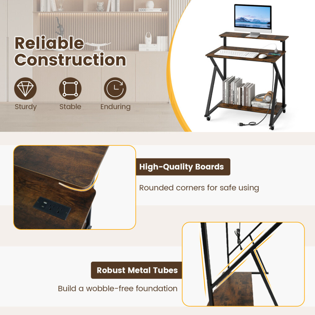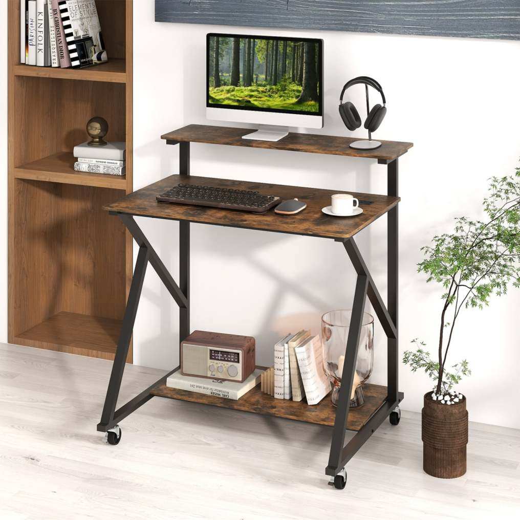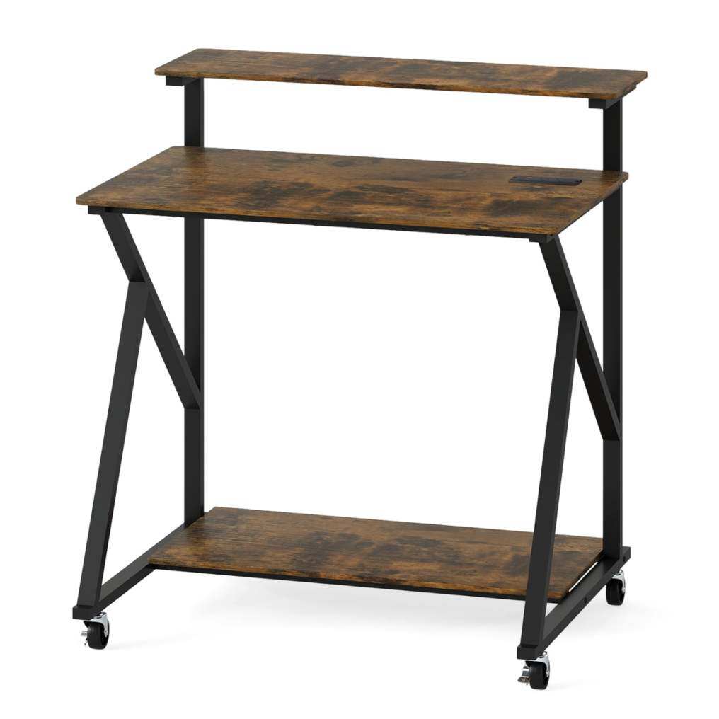 ● Clever Storage Solutions: The monitor stand on this rolling laptop table lifts your screen to a comfortable eye level and opens up extra desktop real estate for keyboards, notebooks, or coffee. Beneath the work surface, a bottom shelf swallows a computer tower, printer, or stack of textbooks, so your small computer desk stays clutter-free and productive.
