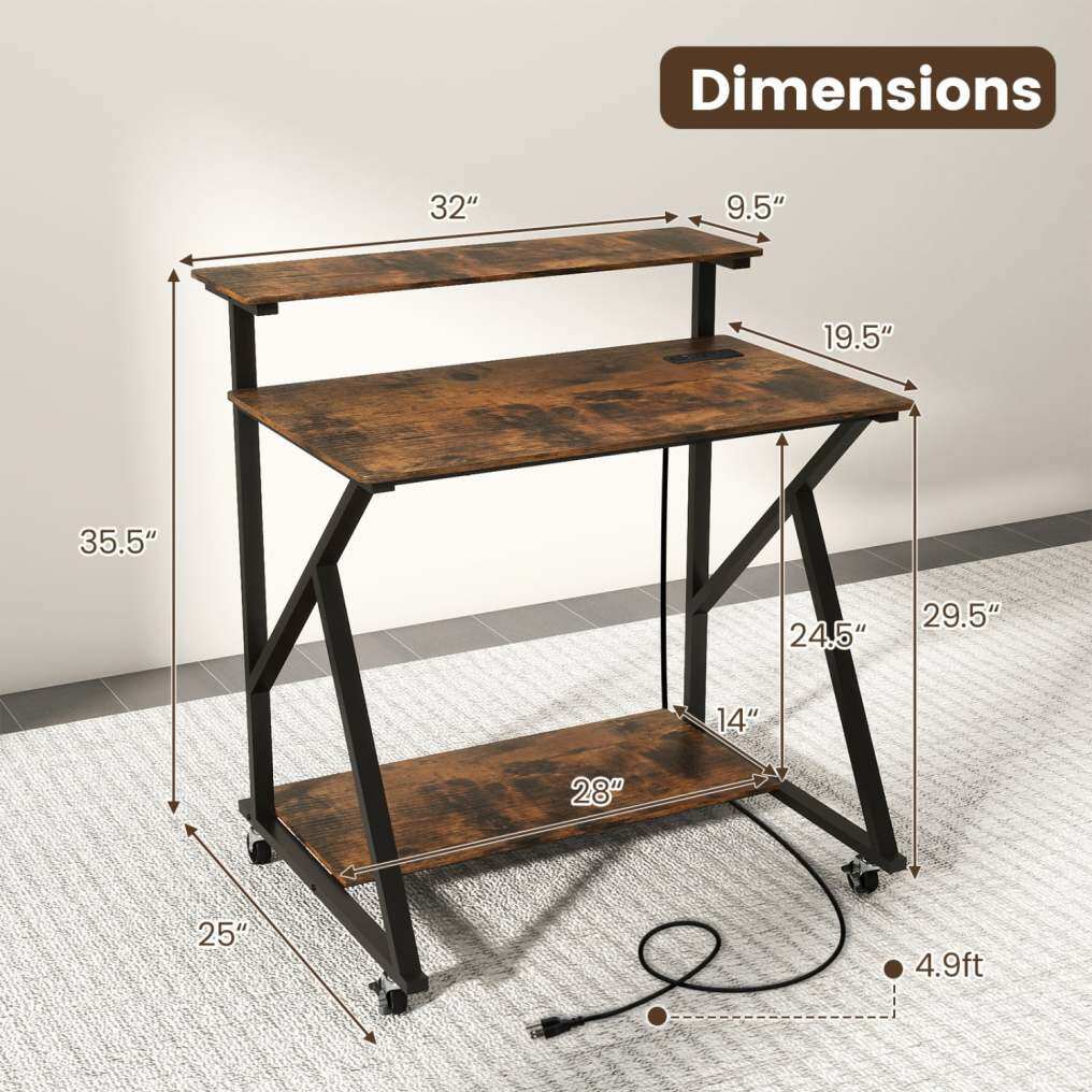 ● Built-in Power Strip: A built-in power hub turns this mobile computer workstation into a clutter-free command center thanks to 2 AC outlets, USB, and Type-C ports that keep every device charged. No more crawling under your compact office desk—just plug monitors, laptops, and phones directly into the desktop strip for instant power.