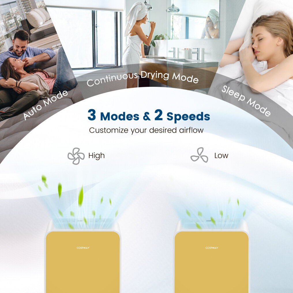 ● Easy Operation and Customizable Airflow: Through a control panel with LED display, users can switch fan speeds, modes as well as set the humidity settings, 24H timer and child safety lock. You are able to customize your desired airflow in 3 modes (auto, continuous drying, sleep) and 2 speeds (high, low).
