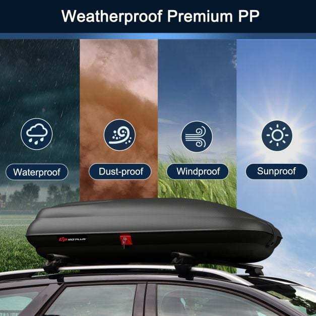 ● All Weather PP Material: Made of heavy-duty PP material, the rooftop storage box is waterproof, dustproof, windproof and sunproof. As a result, it can serve you in all seasons, accompanying years to come. Furthermore, the smooth surface makes it easy to clean it with a cloth.