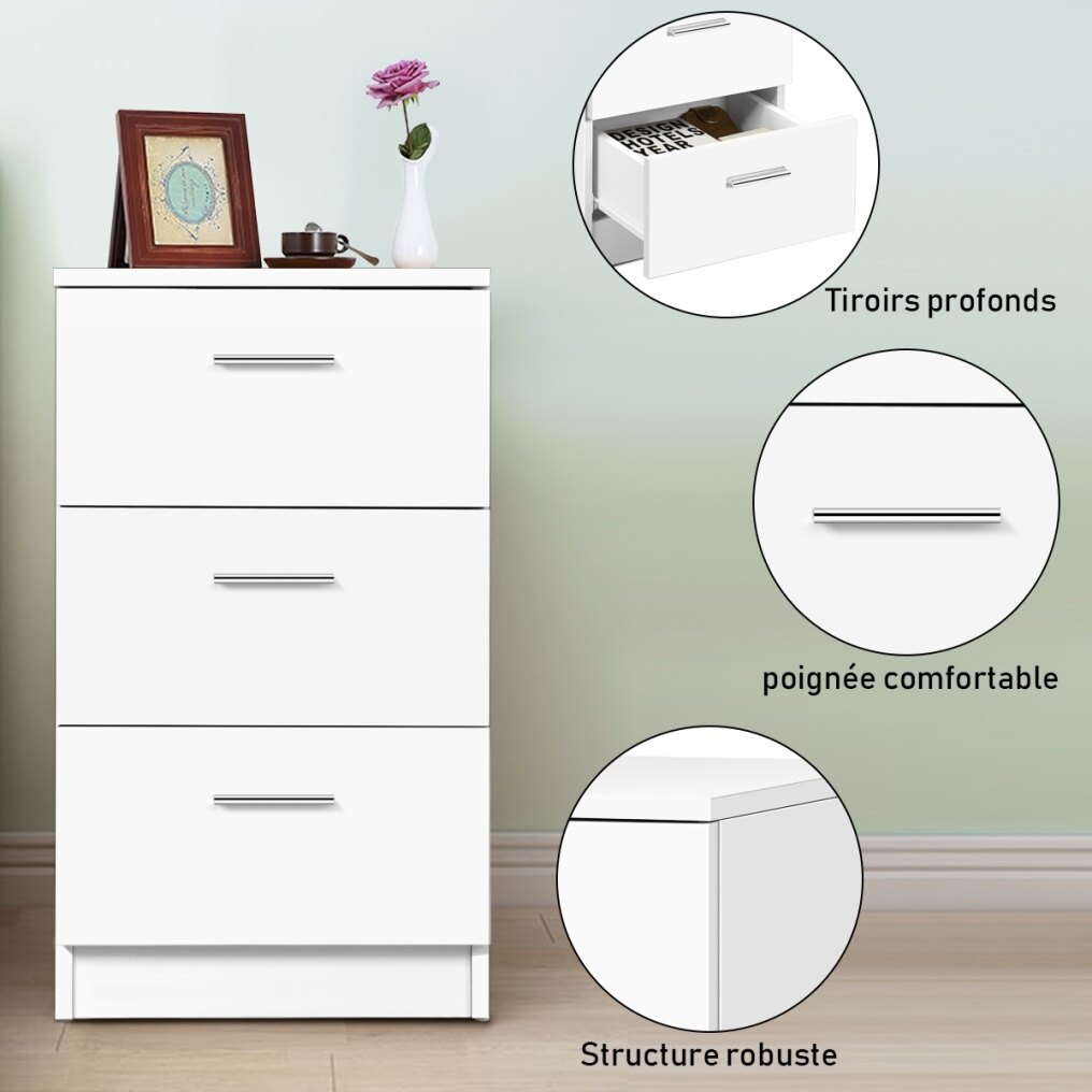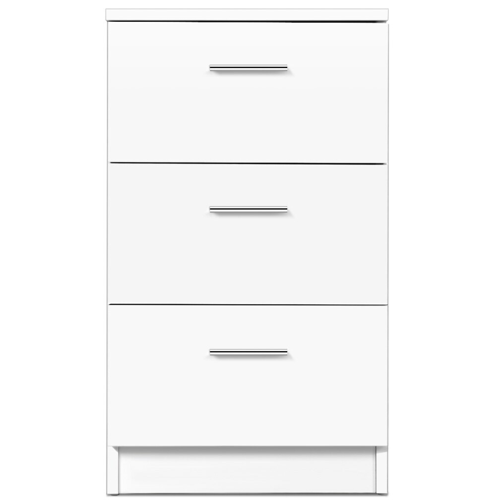A bedside table with 3 drawers is a perfect solution not only for the bedroom. You can successfully use it in the living room, in the office or in the corridor. It will help you organize the space and become a functional complement to your arrangement. White furniture has not gone out of fashion for several seasons now. They perfectly harmonize with the Scandinavian or modern style of our apartments. The exceptionally simple and timeless design of our cabinet will allow you to use it in many different arrangements.