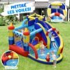 This inflatable playground is perfect for summer parties. With a water slide that leads to the pool, this water playground will keep the kids entertained. Additionally, you can jump, climb and play darts. The inflatable house is shaped like a boat and creates unforgettable childhood memories. The thick Oxford fabric guarantees long lasting durability and the mesh keeps kids safe while jumping, let them float on the deck!