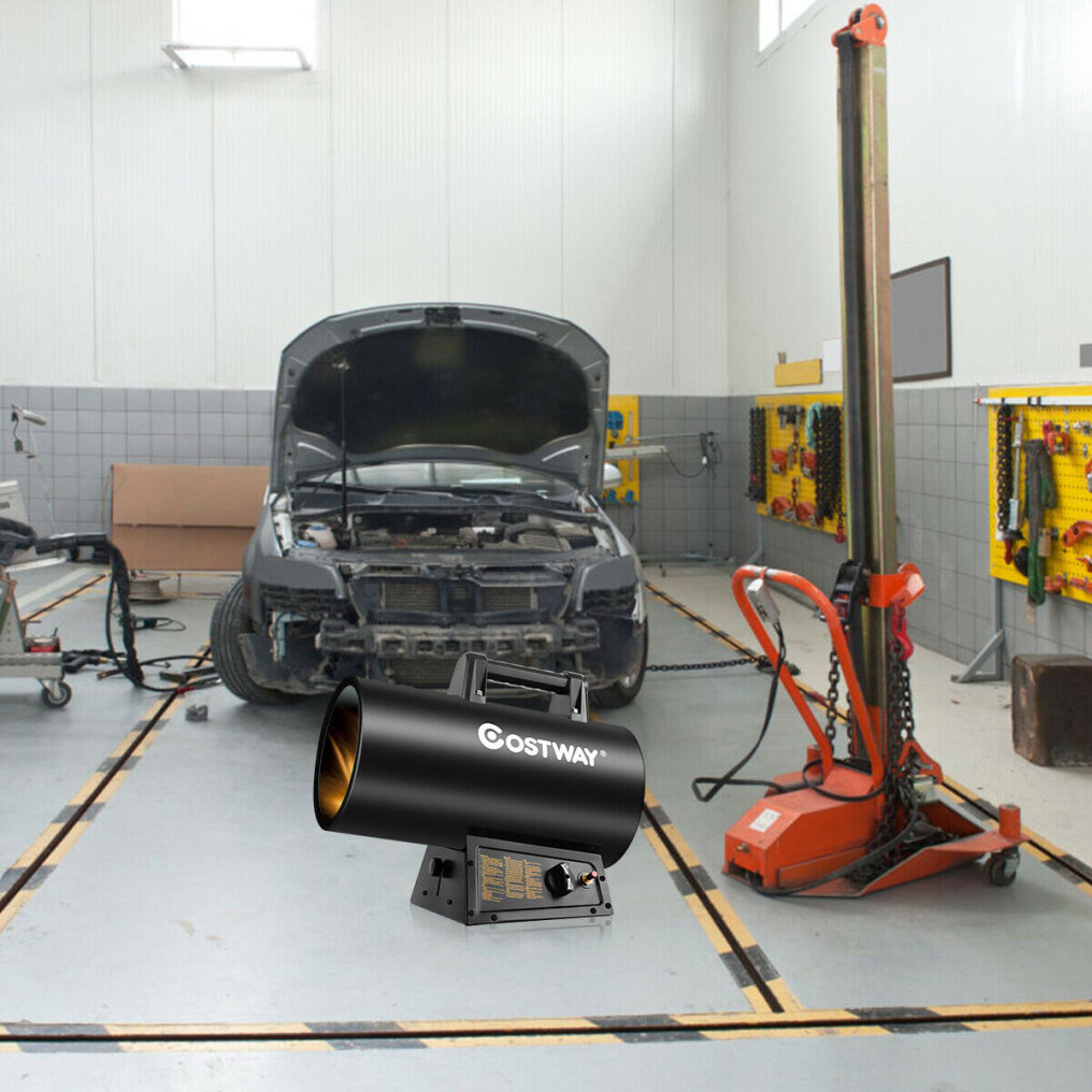 This is the portable propane forced air heater which is used in ventilated garages, barns or construction sites.
