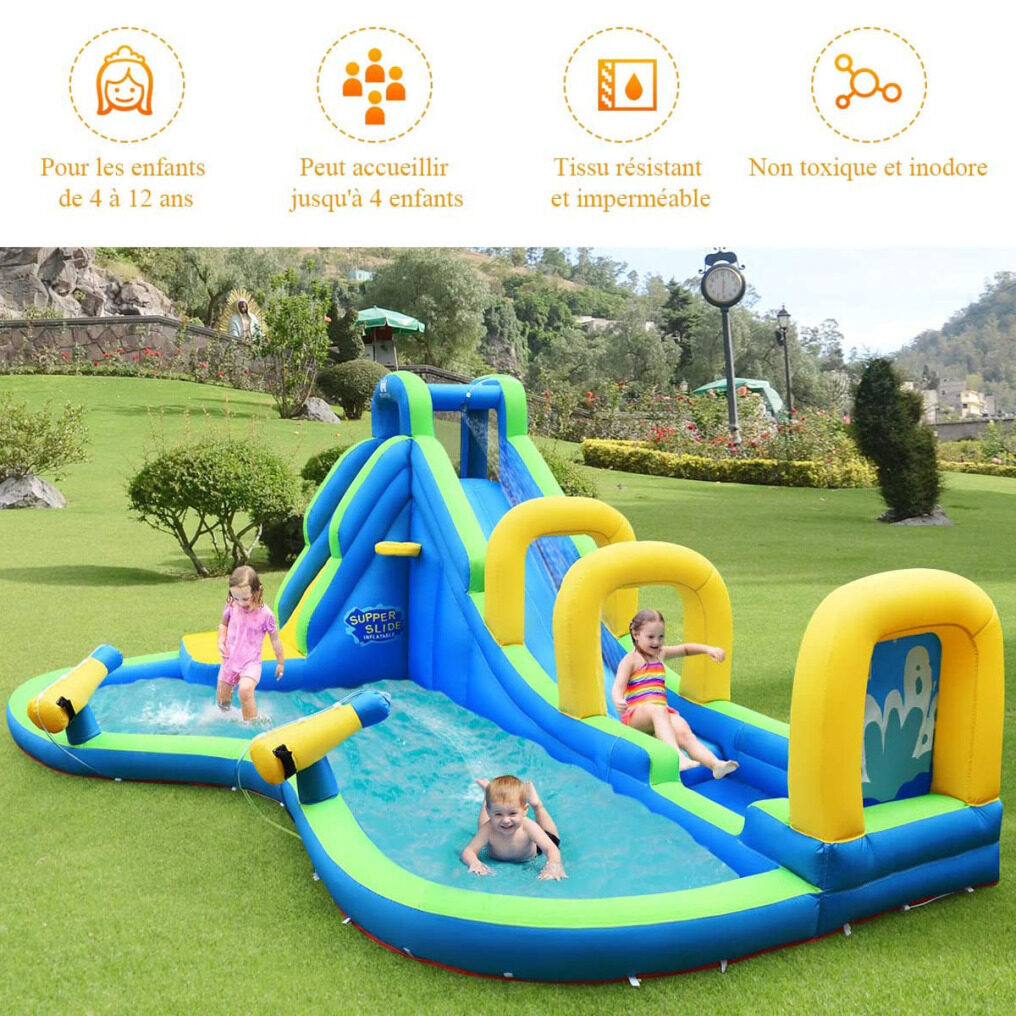 Easy to inflate and store: The inflatable playground full of water games fills up in minutes. It also deflates quickly after use thanks to the air valve and can be stored in a carry bag taking up minimal space.