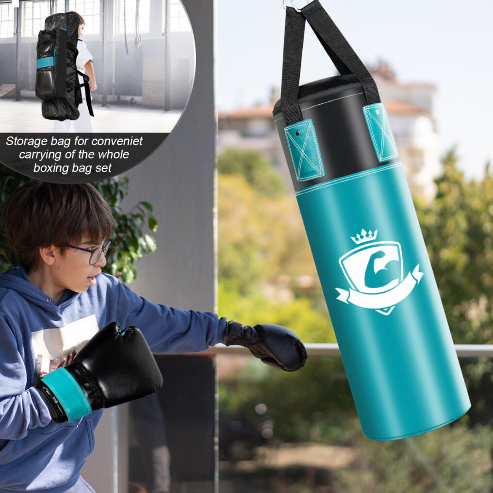 Easy assembly and transport: The accessories that you will find in the package will allow you to mount the bag to the ceiling, on a boxing hanger or stand. We also added a bag to the set, which will make it easier for you to transport the whole set.