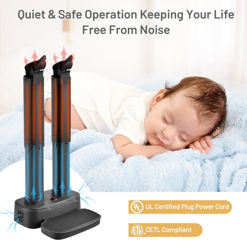 ● Reliable ETL Certified Product: To provide you with quality products is this mission. This shoe dryer is ETL certified product, the whole structure is made of PP material, the plug and power cord are certified by UL, which guarantees the reliable quality of this products, and you can rest assured to us.