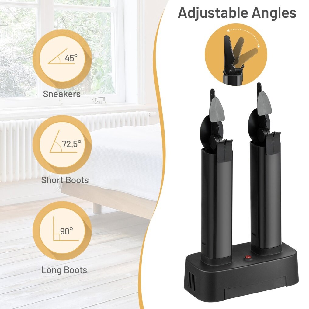 ● Effictive Deodorization and Sterilization: When drying your shoes, it also will eliminate odors and kill bacteria inside shoes to prevent foot diseases and keep healthy. Use this shoe dryer before going out in winter to warm your shoes and eliminate cold discomfort. This is a multi-functional home necessity.