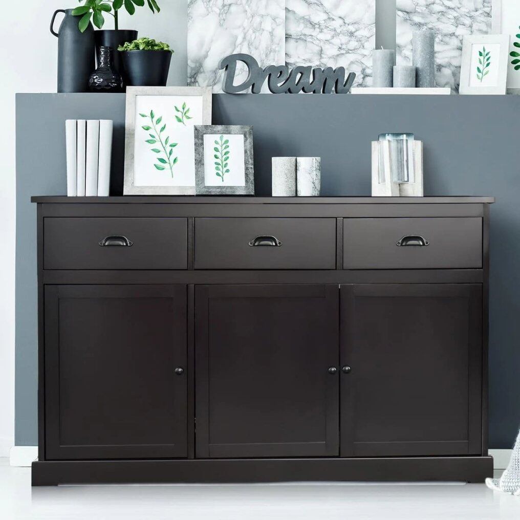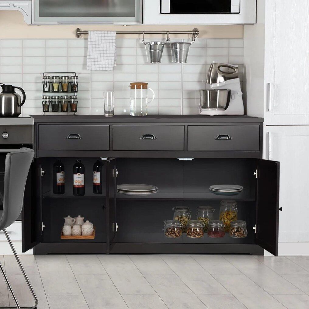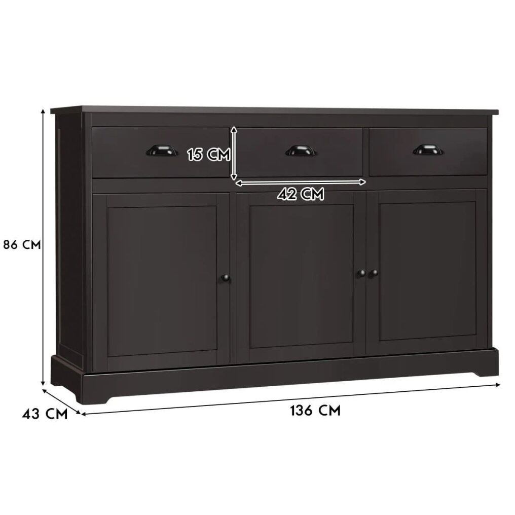 Large storage space - long top, 3 drawers, and 4 height-adjustable lockable shelves provide a lot of storage space
