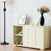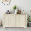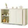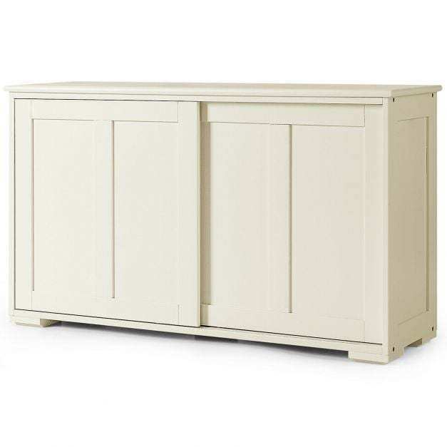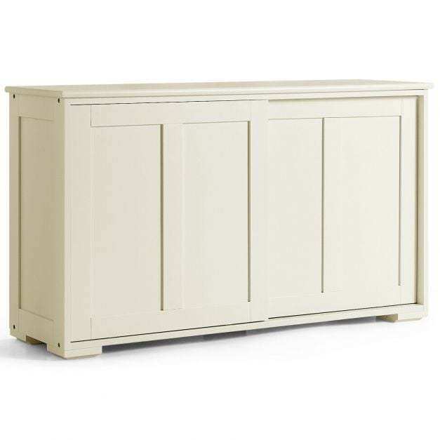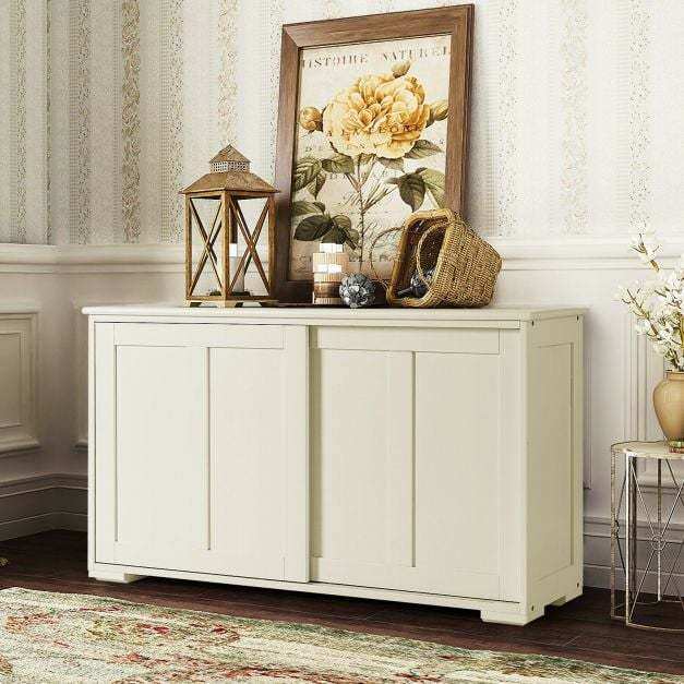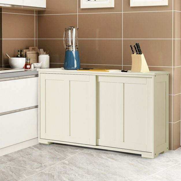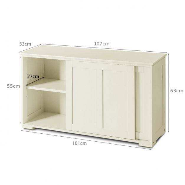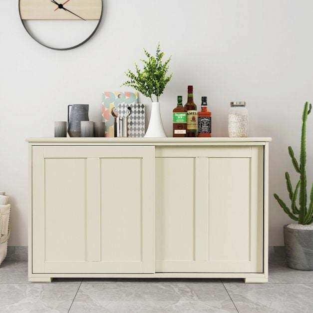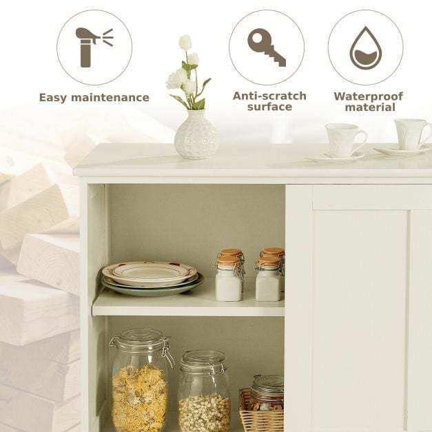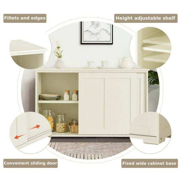 Adequate Space for Tableware: The overall dimension of kitchen cabinet is 107x 33 x 63 cm. Apart from wide cabinet top, there are two spacious compartments that allow you to sort items and an adjustable divider which allows you to allocate storage space freely.