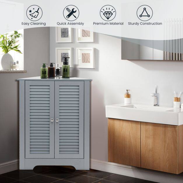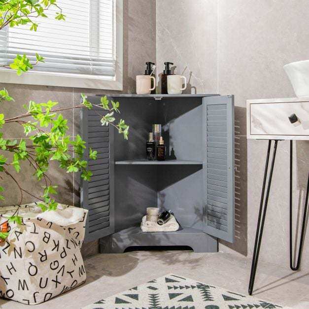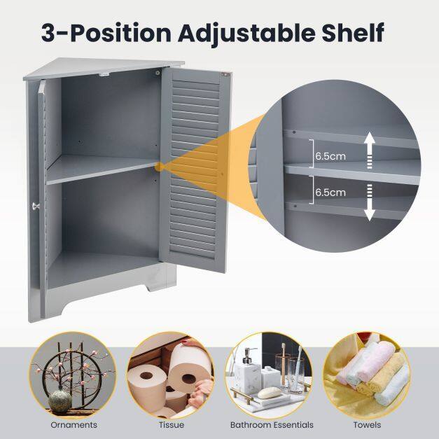 【Sufficient Storage Capacity】The 2-door storage cabinet can meet your needs and keep the room tidy. In addition to the spacious triangular table top, this storage and storage cabinet also has 2 tiers of shelving behind the doors. Most importantly, the middle shelf can be adjusted to 3 heights or removed.