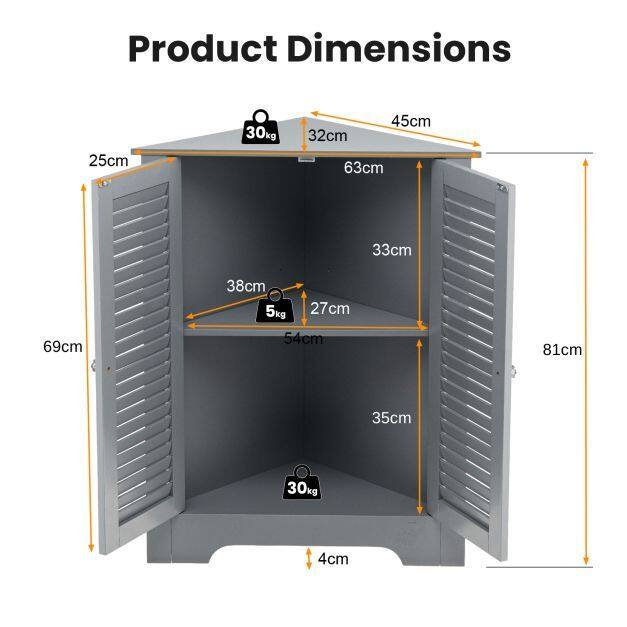【Space-saving Corner Cupboard】Corner storage cupboard with appropriate dimensions of 63cm x 32cm x 81.5cm is suitable for rooms with limited space. It can make good use of corner space, holding vases, picture frames or other ornaments on its triangular counter to accent your room.