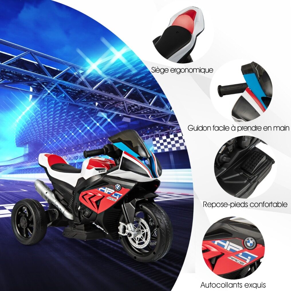 Our 6V kids motorcycle will be one of the most popular ride toys for kids, which will benefit their motor skills and hand-foot coordination. It has a bright headlight, cool windshield, exquisite decals and faux exhaust to attract kids' attention. Forward/reverse button, power button and foot pedal allow children to easily control the motorcycle. Its 6V battery and durable wheels allow toddlers a smooth ride at a safe speed of 3km/h. In order to have more fun, it also offers music, sound, learning and USB functions. And its 3 wheel construction keeps it stable and sturdy. Grippy handlebars, ergonomic seat and wide footrest bring much more comfort. In addition, the charging time is 8-12 hours while the battery life is 40 minutes.