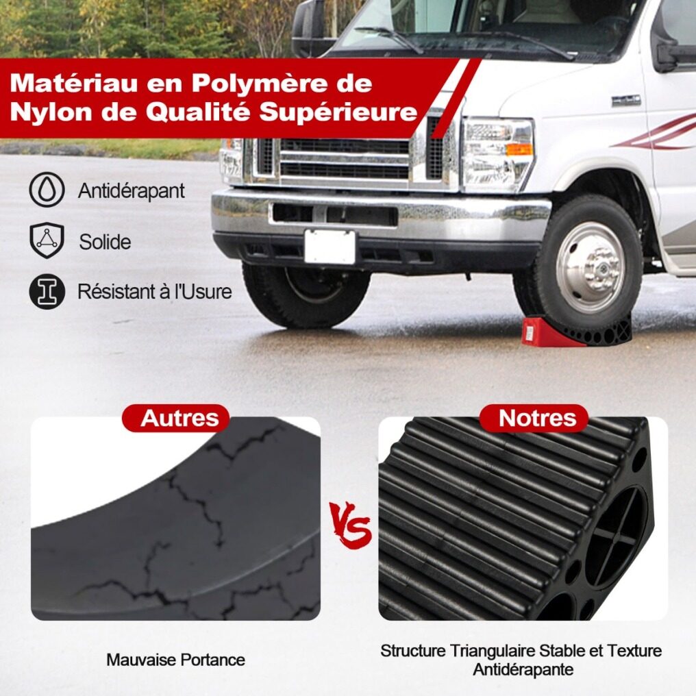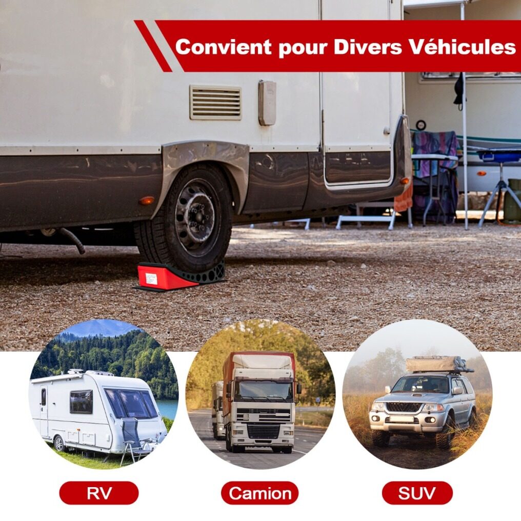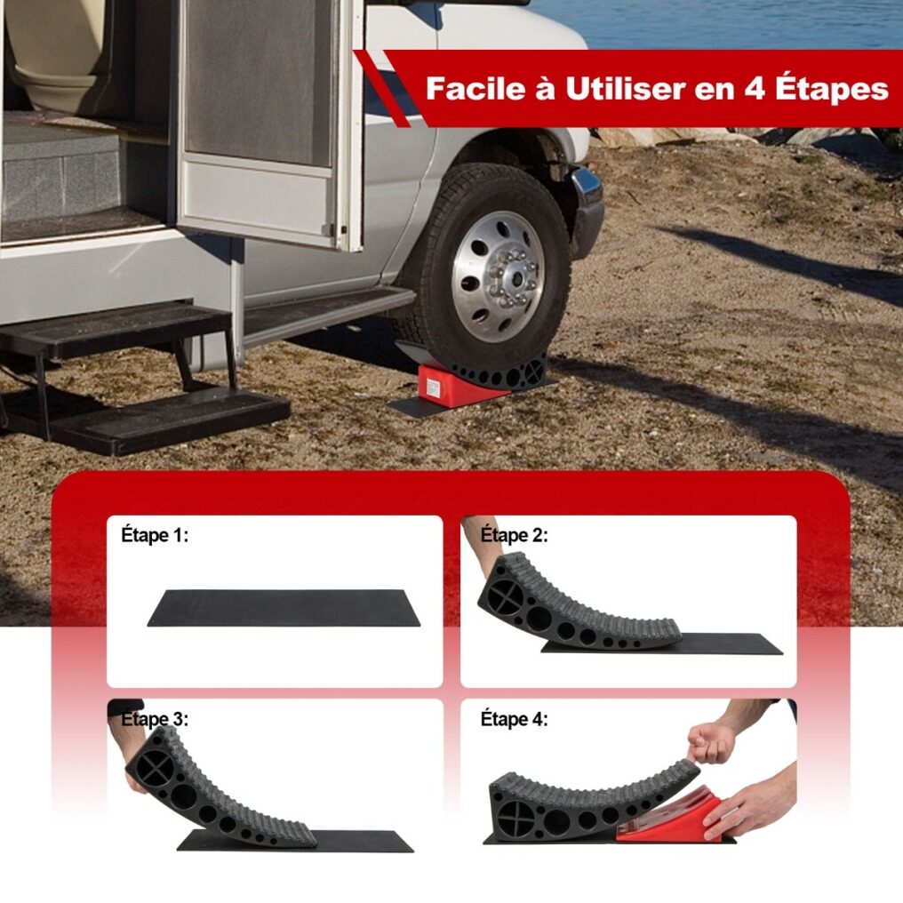 Non-slip Design: Thanks to the 2 rubber grip non-slip mats, the friction between the leveling blocks and the ground will be greatly improved, thus ensuring more stability. In addition, the construction of the RV levelers prevents the vehicle from slipping and secures the chock securely to the leveler.