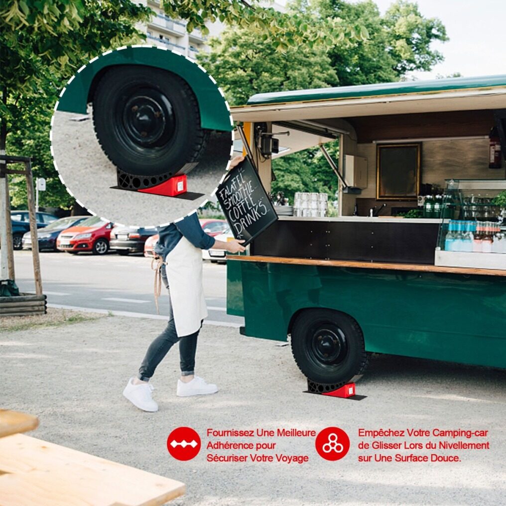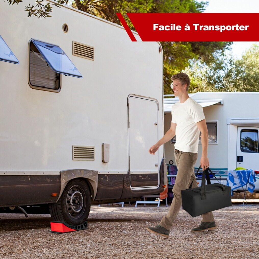 If you buy our levellers, you won't have to think about this possibility anymore. We'll think about it! Our leveling blocks are made of high quality and durable PA and HDPE materials. They are a useful tool to keep your tires from shifting, so your vehicle stays securely in place. Of course, we also have rubber anti-slip pads to provide double protection and stability. For convenience, we also provide carry bags that can be easily taken out when camping.