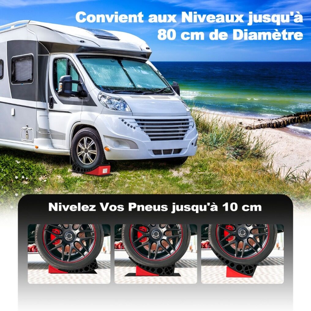 Perfect Camper's Companion: This RV leveler set with carry bag works well on RVs with tires up to 32" in diameter (within 8" thick). It can effectively level tires up to 10cm, preventing the vehicle from slipping when leveling on a soft surface. Therefore, you can enjoy your journey with this super safe product.