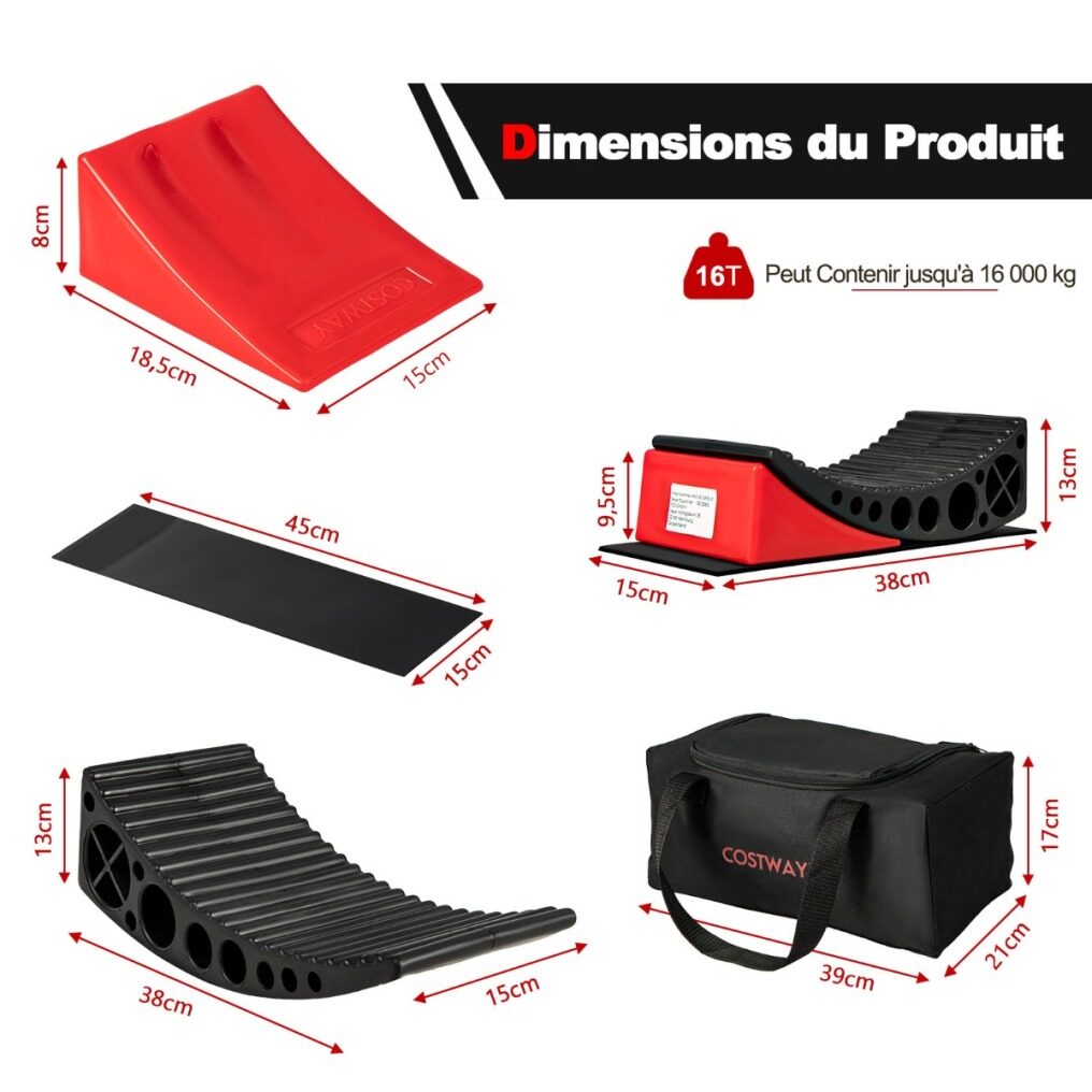Levels tires up to 10cm, preventing slippage.