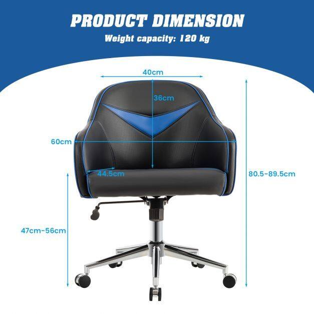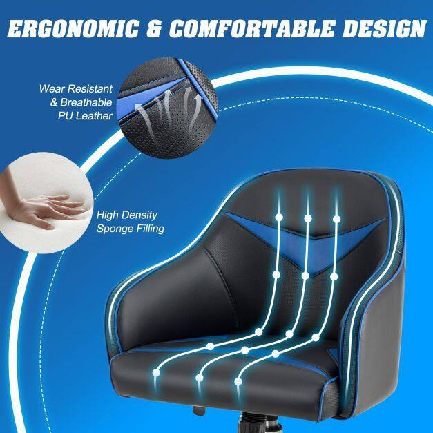 Ergonomic backrest and armrest: The office chair is designed with an ergonomic structure to relieve discomfort caused by sitting for a long time. The padded backrest conforms well to your body shape, while the closed armrest relaxes your arm and provides a comfortable seating experience so you can focus on work or play.