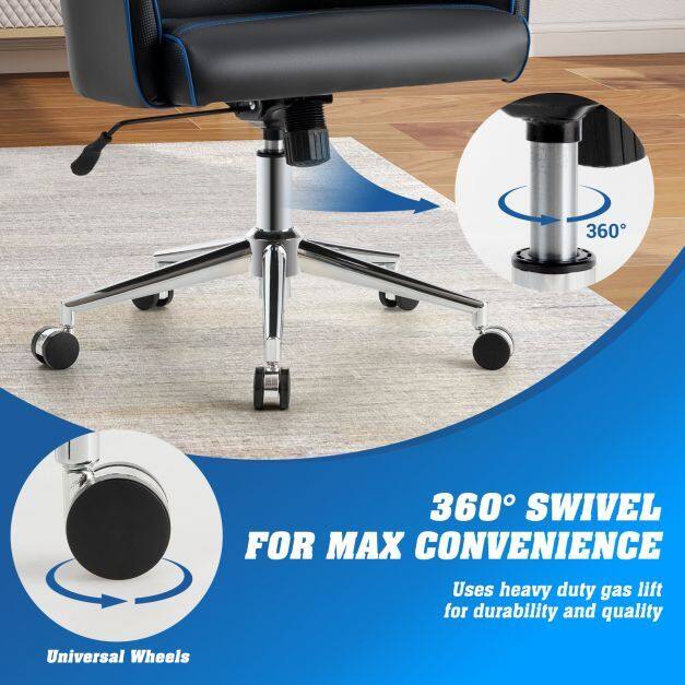 360° ROTATION FOR MORE COMFORT: Equipped with 5 flexible casters, the computer chair features 360° rotation for easy mobility in all directions. Its casters move smoothly and the rotating seat lets you stay mobile, allowing you to reach office supplies or play equipment in a short time.
