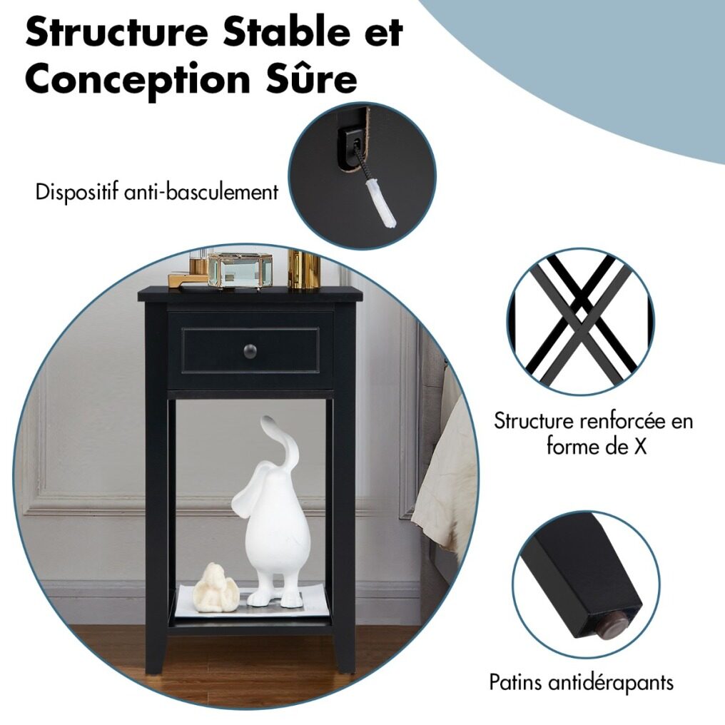 Ample Storage Space: This 2-tier bedside table features an open shelf and a drawer at the bottom, providing plenty of space for storing bedside essentials and other small items. In addition, the spacious tabletop is convenient to put your cups, glasses, family photos, table lamps, decorations, etc.