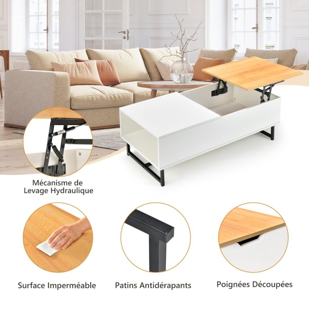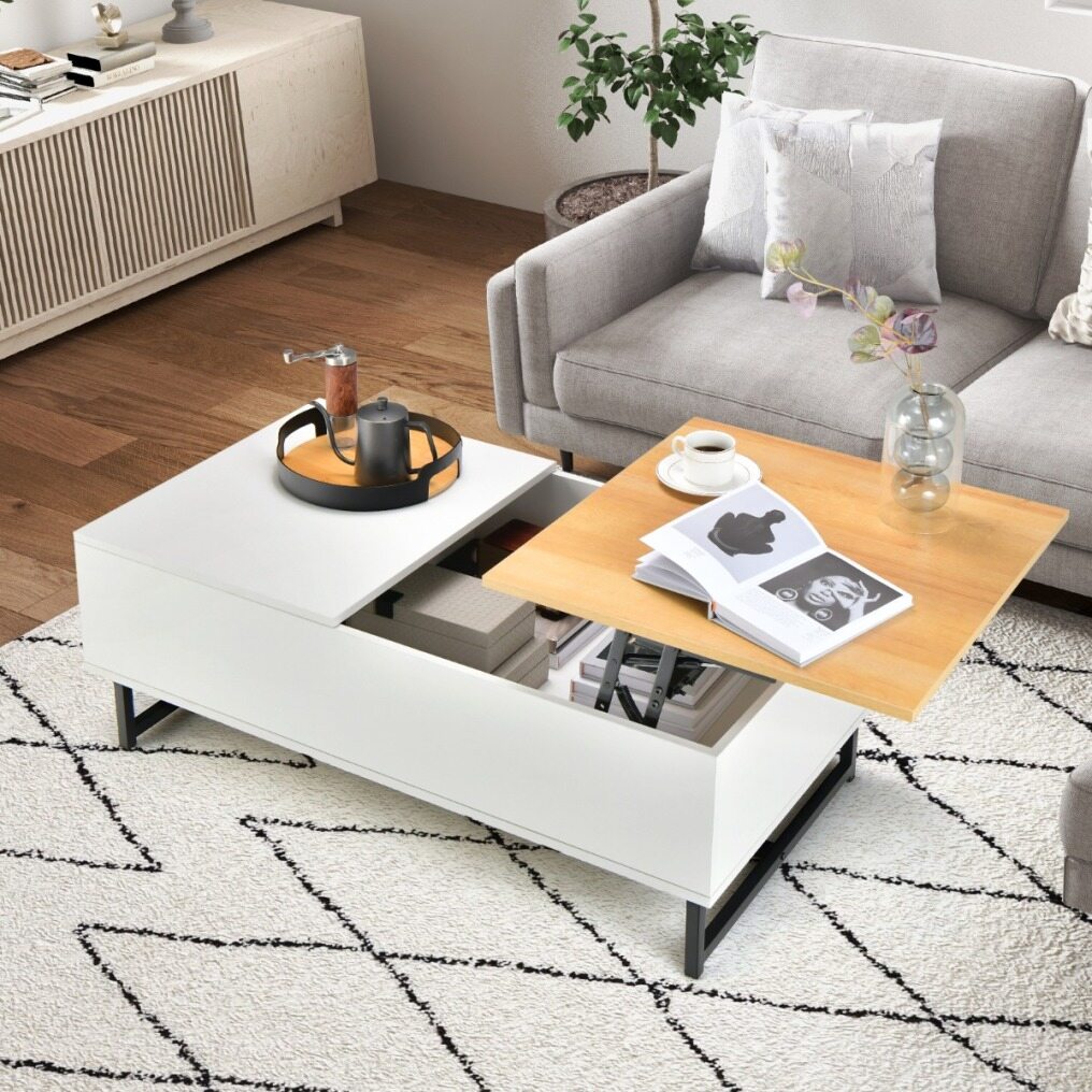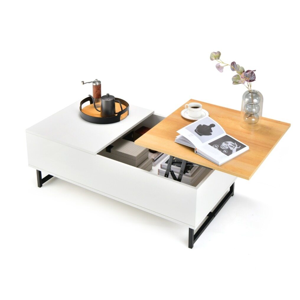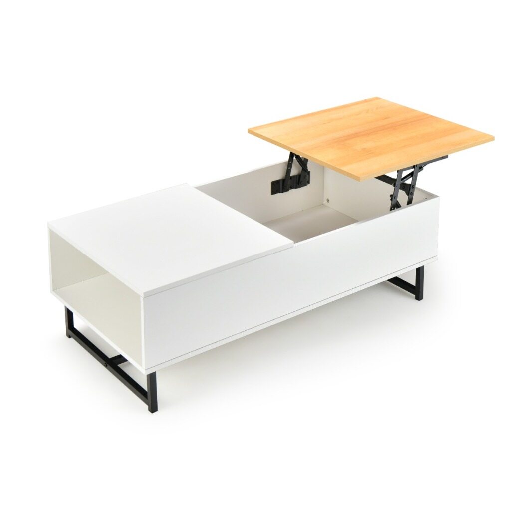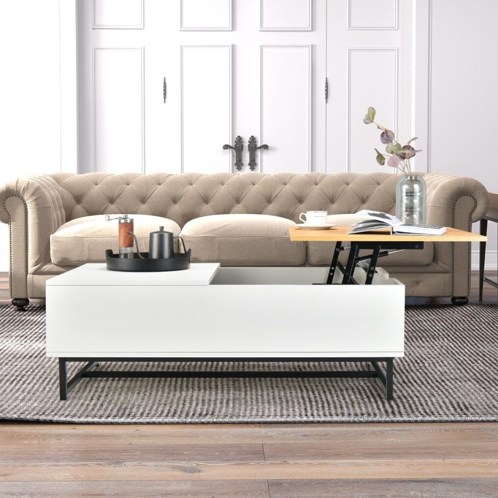 Unique Lifting Top Design : The coffee table has an extended top that can be lifted to provide a floating work surface. With the hydraulic lifting mechanism, the table top can be raised and closed steplessly. This can help avoid a stiff neck when working on a laptop for a long time.