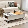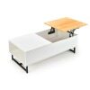 Haven't you found a suitable coffee table for your living room yet? Our coffee table will be a good choice for you. The high-quality metal frame and thickened top give our coffee table wonderful stability and durability, which can provide you with long-lasting quality services. The lifting table top design allows it to be used as a dining table, game table or study table to meet your diverse needs. Non-slip foot pads protect your floor from scratches, while the cut-out handles make it easy to move the coffee table. At the same time, there is a storage compartment under the lifting roof. And the open shelves on the side provide additional storage space, perfectly meeting the storage needs in daily life. There is no doubt that our coffee table has an elegant appearance to be a fantastic decoration for your room.