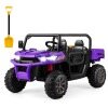 Do you want to give your little ones an unforgettable and happy childhood? Our dump truck for kids is an ideal choice! With realistic tractor appearance, bright LED headlights and rear-view mirrors, the truck offers a realistic driving experience for kids. Your kids just need to press the power button, press the shift lever and step the foot pedal to easily move or stop the car. The automatic tilt and lift gear with opening tailgate and shovel will surely attract children's attention. In addition, the off-road vehicle is equipped with cheerful music and a horn, which ensures unlimited driving fun. And the USB, MP3 and telephone connection function also provide him with even more entertainment resources. Also, parents can rest assured that our 12V battery powered dump truck is very safe and reliable. The spring suspension system effectively absorbs the shock and minimizes the impact, providing a smooth ride. The seat is also secured with a seat belt for better protection. Even better, the smooth start and stop function effectively prevents children from turning pale during sudden acceleration and braking. Parents can also control the vehicle freely with the 2.4G remote controller.