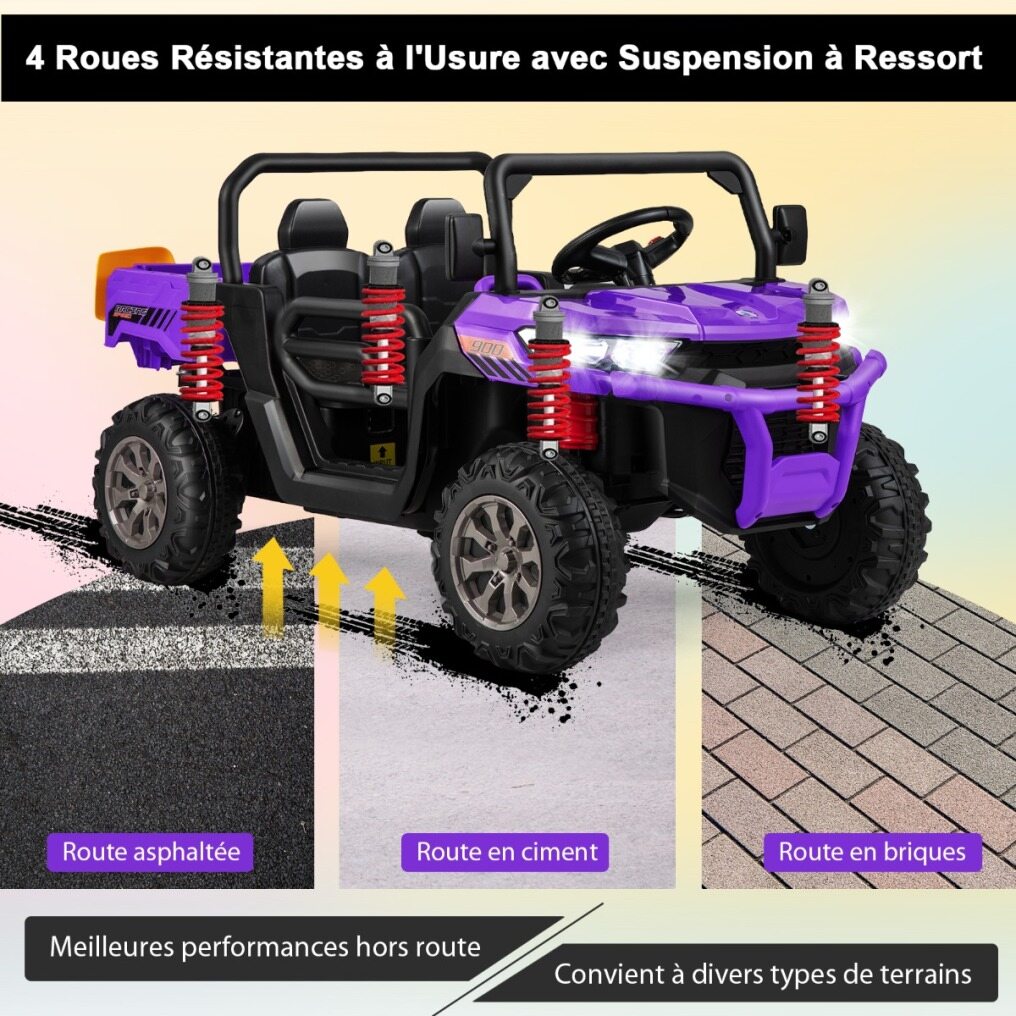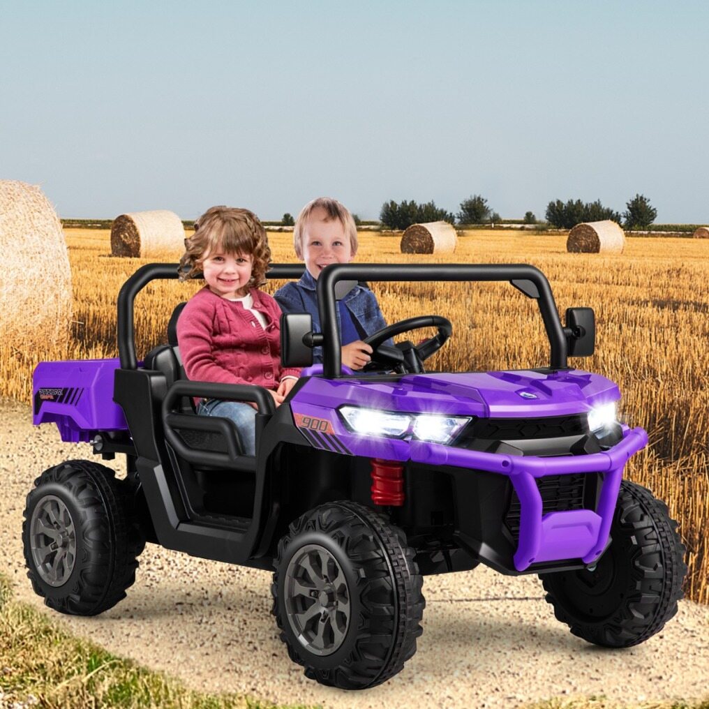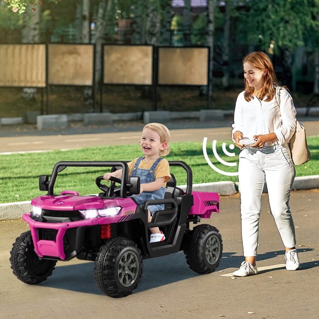 Kids Truck with 2 Seats & Endless Fun: The off-road vehicle has 2 seats and a high load capacity of up to 50 kg, which can delight 2 small children at the same time. Plus, built-in music, aux-in, USB port, and wireless connectivity features keep you entertained. And the rocking mode will surprise your kids even more.