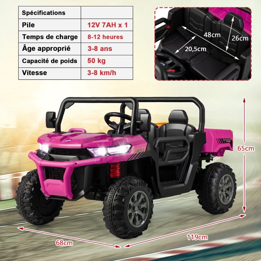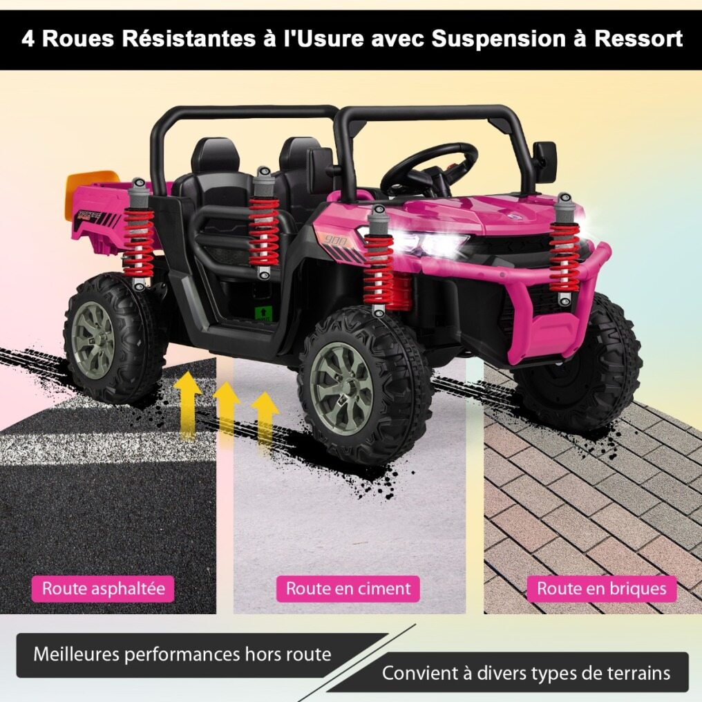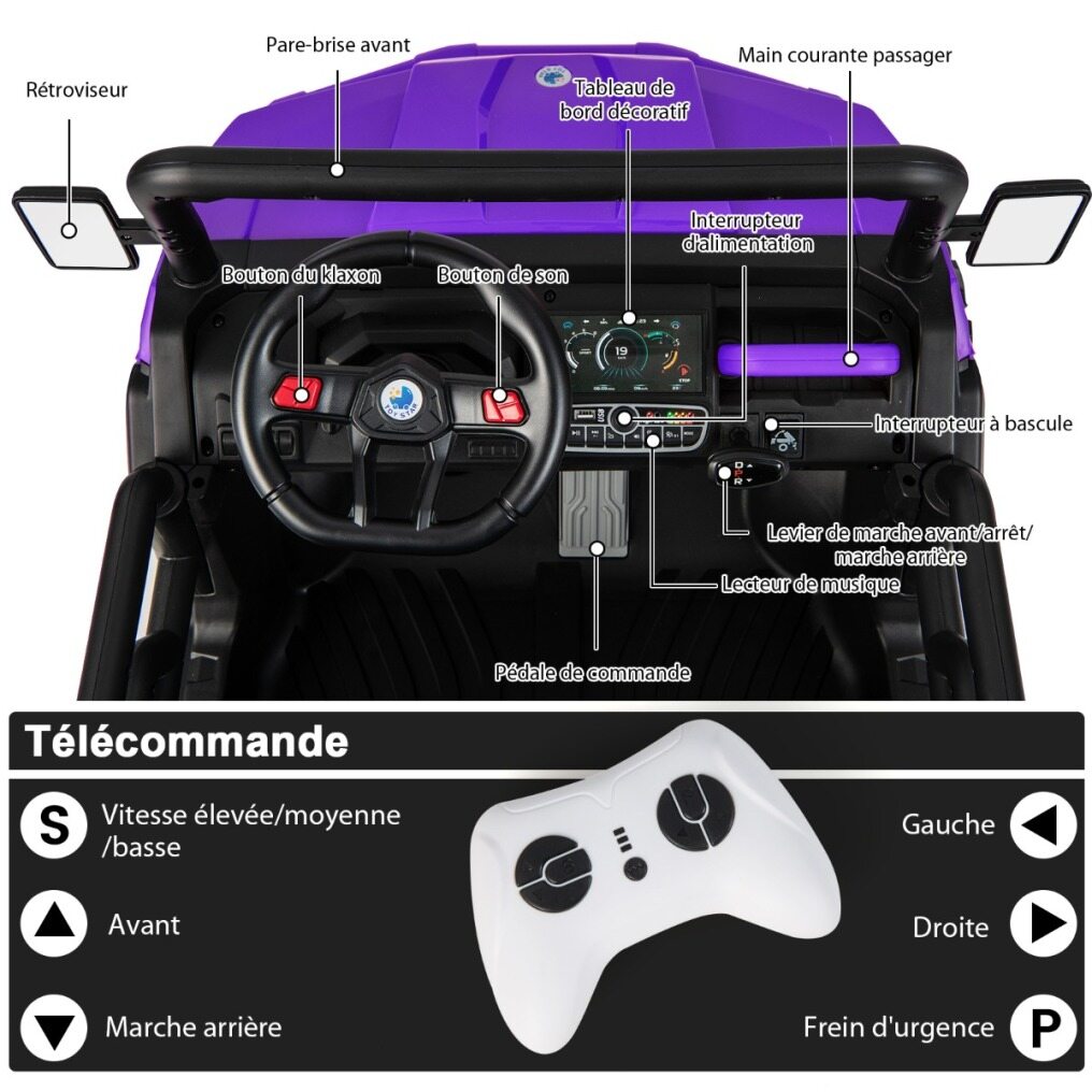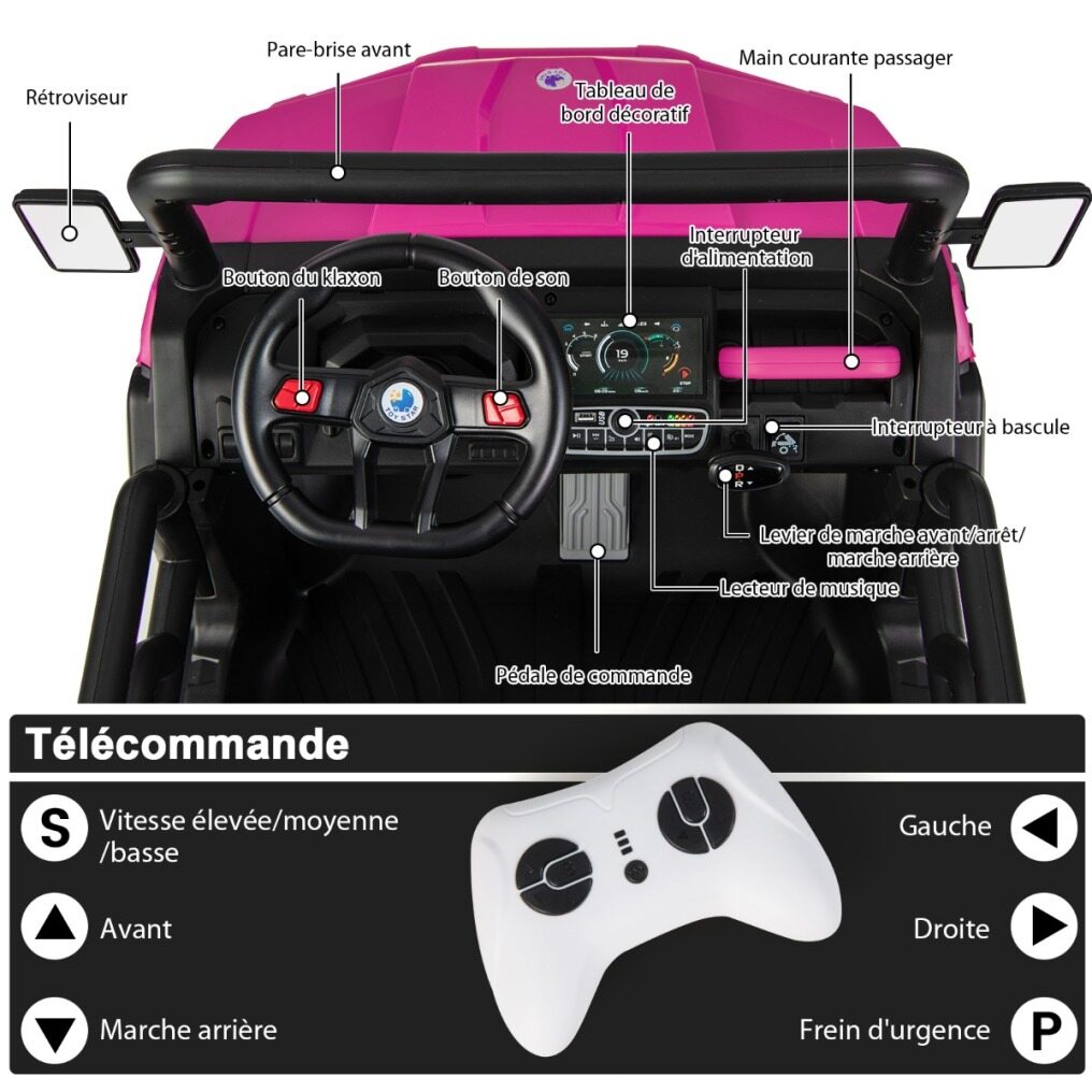 Kids Truck with 2 Seats & Endless Fun: The off-road vehicle has 2 seats and a high load capacity of up to 50 kg, which can delight 2 small children at the same time. Plus, built-in music, aux-in, USB port, and wireless connectivity features keep you entertained. And the rocking mode will surprise your kids even more.