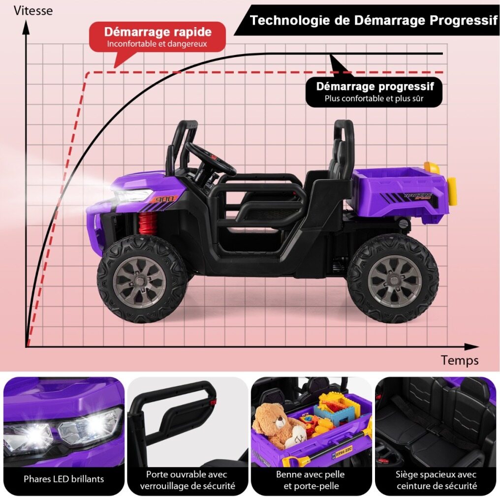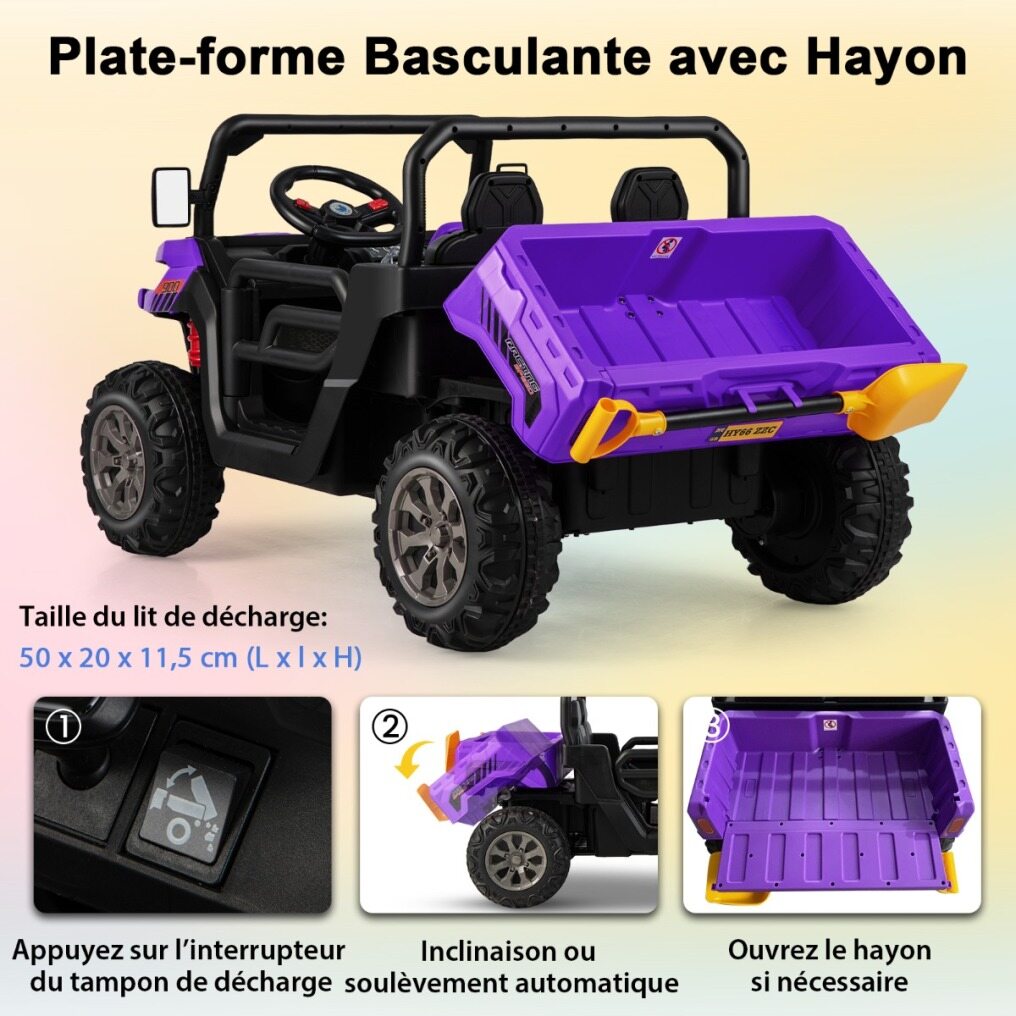 Automatic Cargo Bed & Extra Shovel: Equipped with a tilting cargo bed, this electric toy tractor brings kids a unique experience compared to ordinary kids cars. As soon as children press the bed switch, it is automatically deflated or raised. Along with the shovel, your little ones can have hours of fun loading sand, collecting leaves and more.