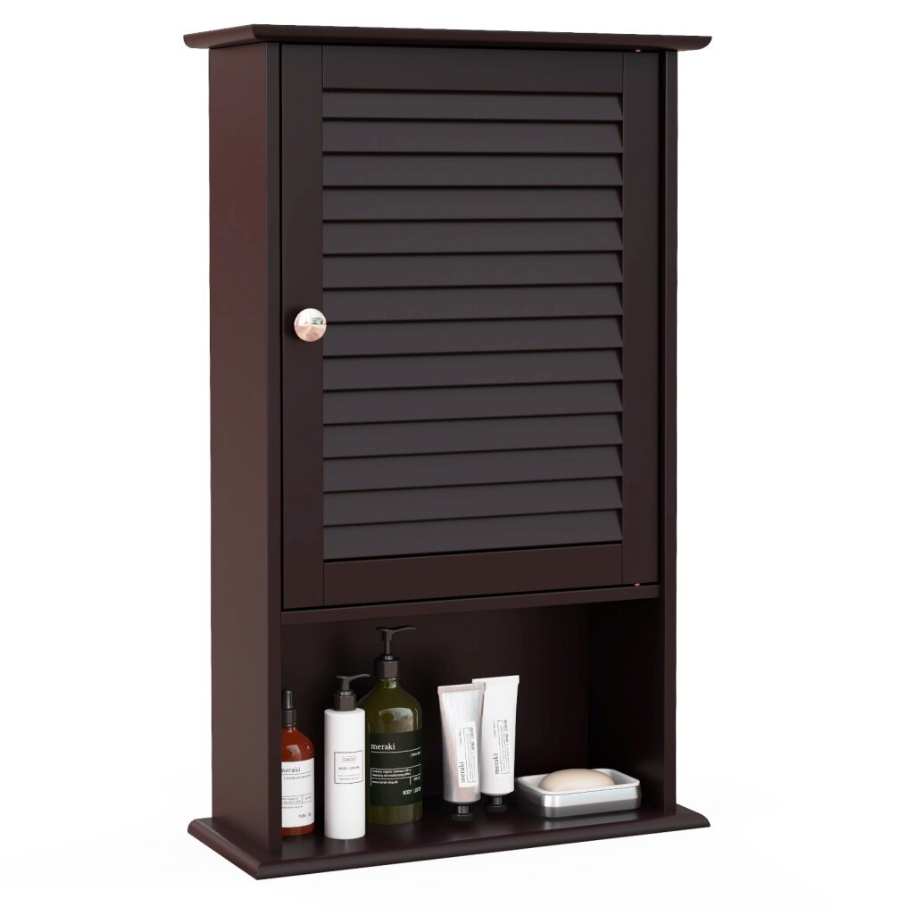 ● Simple and Stylish Design: Bathroom wall cabinet has a simple and stylish design, woody material is full of texture. It features enclosed shelf with a unique louver door design, and one open shelf to place towels, soap, tissues and other decorative items. In addition you can also put some green small plants on the open shelf to make your room neat and beautiful.