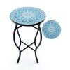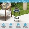 Eye-catching Display: Combining stunning mosaic tabletop and elegantly curved black metal frame as one, this patio side table adds a touch of style to any outdoor setting.