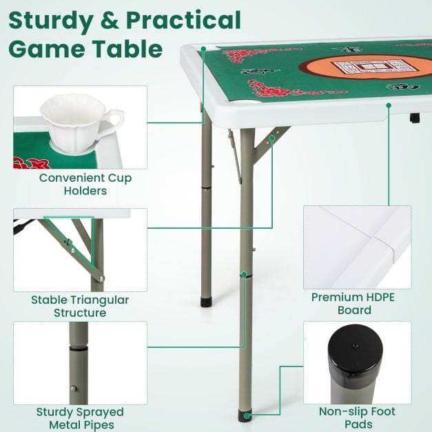 ● Suitable for Various Scenarios: This poker table is not just for home use, it's versatile enough for a variety of scenarios. Whether it's a family night, an outdoor picnic, or a lively party, this folding mahjong table will be a great addition to any social gathering.