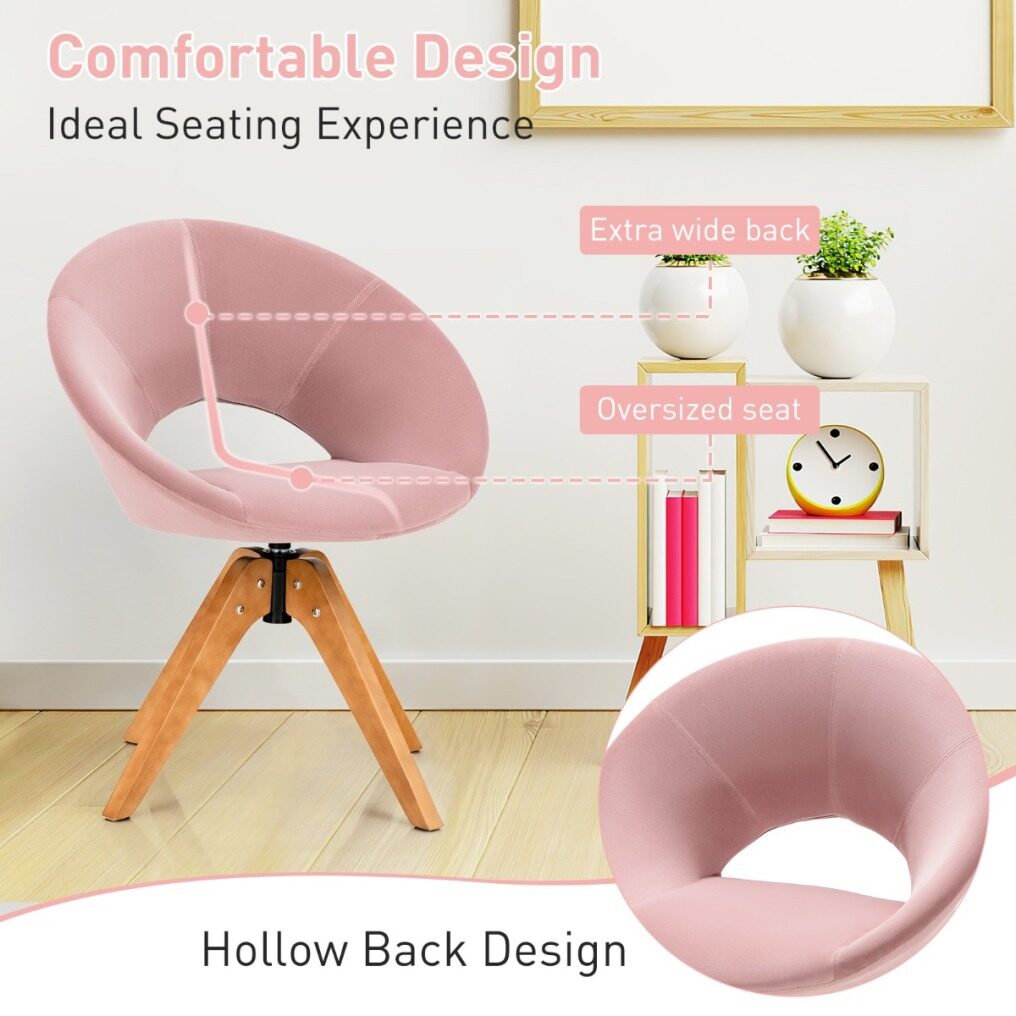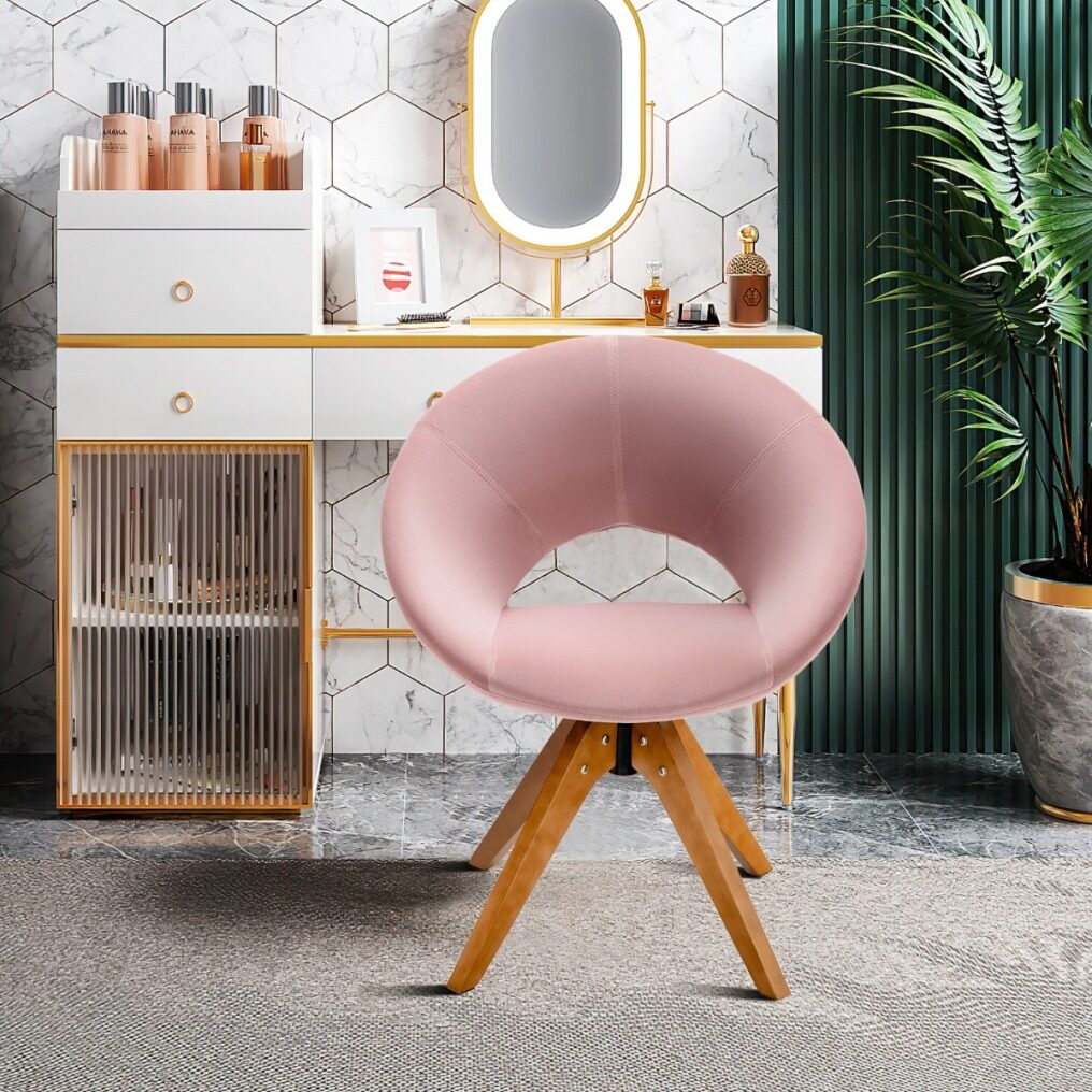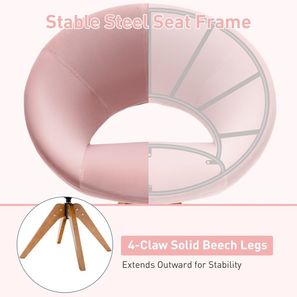 Featuring a thick cushion with high-density sponge filling, this swivel accent chair makes seating pleasant and relaxed. Other comfortable designs like soft flock fabric, oversized seat, and extra-wide hollowed back, enhance the ideal seating experience and ergonomic support. The steel seat frame with 4 solid beech legs firmly and stably supports this accent chair. A stainless steel swiveling system enables the chair to rotate in all directions with no wheels to scratch floors. The anti-skid pads will protect your floor. This accent chair works magnificently as a vanity chair, a task chair, or a dining chair.