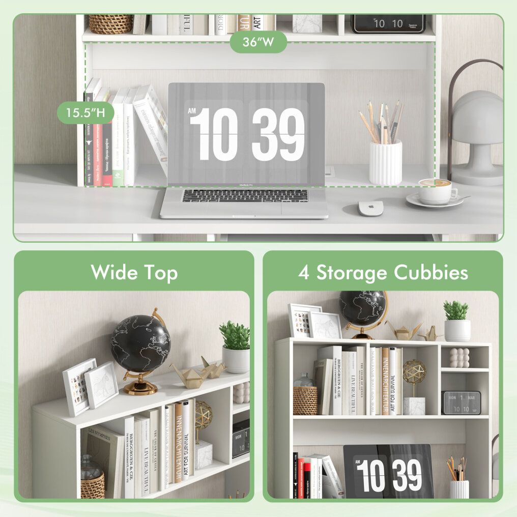 ● Organize and Declutter Your Computer Desk: Would you like to add storage space to your small computer desk? Try this tabletop bookshelf! With a 36"W x 15.5"H bottom compartment and 4 storage cubbies, it can help fully use the vertical space.