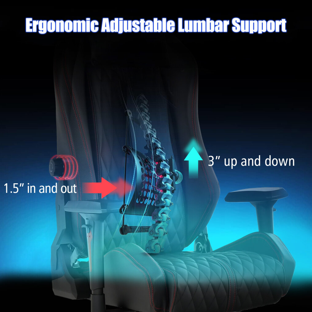 ● User-friendly Details: Fitted with upgraded 4D adjustable armrest which can move forward and backward for 2.8", horizontal in and out for 0.6" and out for 0.6 inch, swivel 20° on each side and has a vertical height adjustment of 3". Additionally, the premium PU leather surface features a unique pattern and fine stitching.