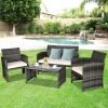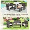 Rattan patio set includes one loveseat, two single chairs and one coffee table.