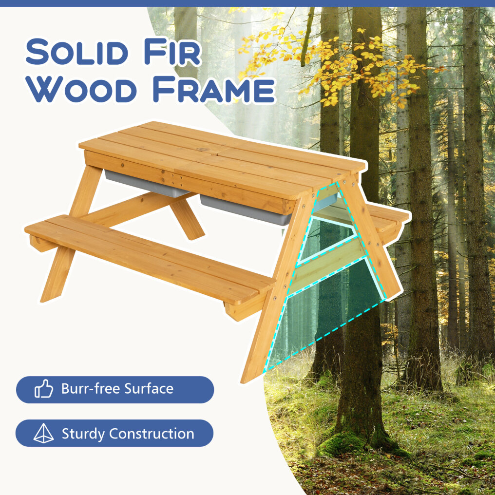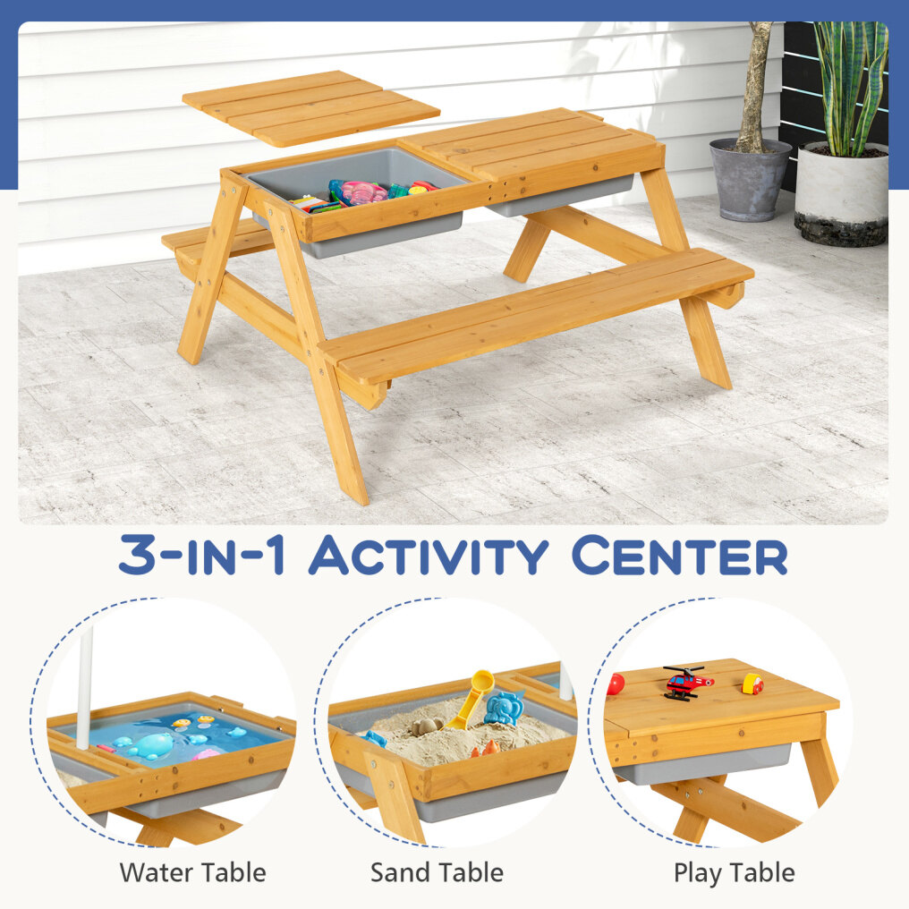 ● 3-In-1 Convertible Design: Designed with 2 removable lids on the tabletop, this convertible table can be used not only as a kid's picnic table but also as a sand table with a sandbox and a water table with the water tub, allowing your children to enjoy the delicious meal, build the sand castle or play with water.